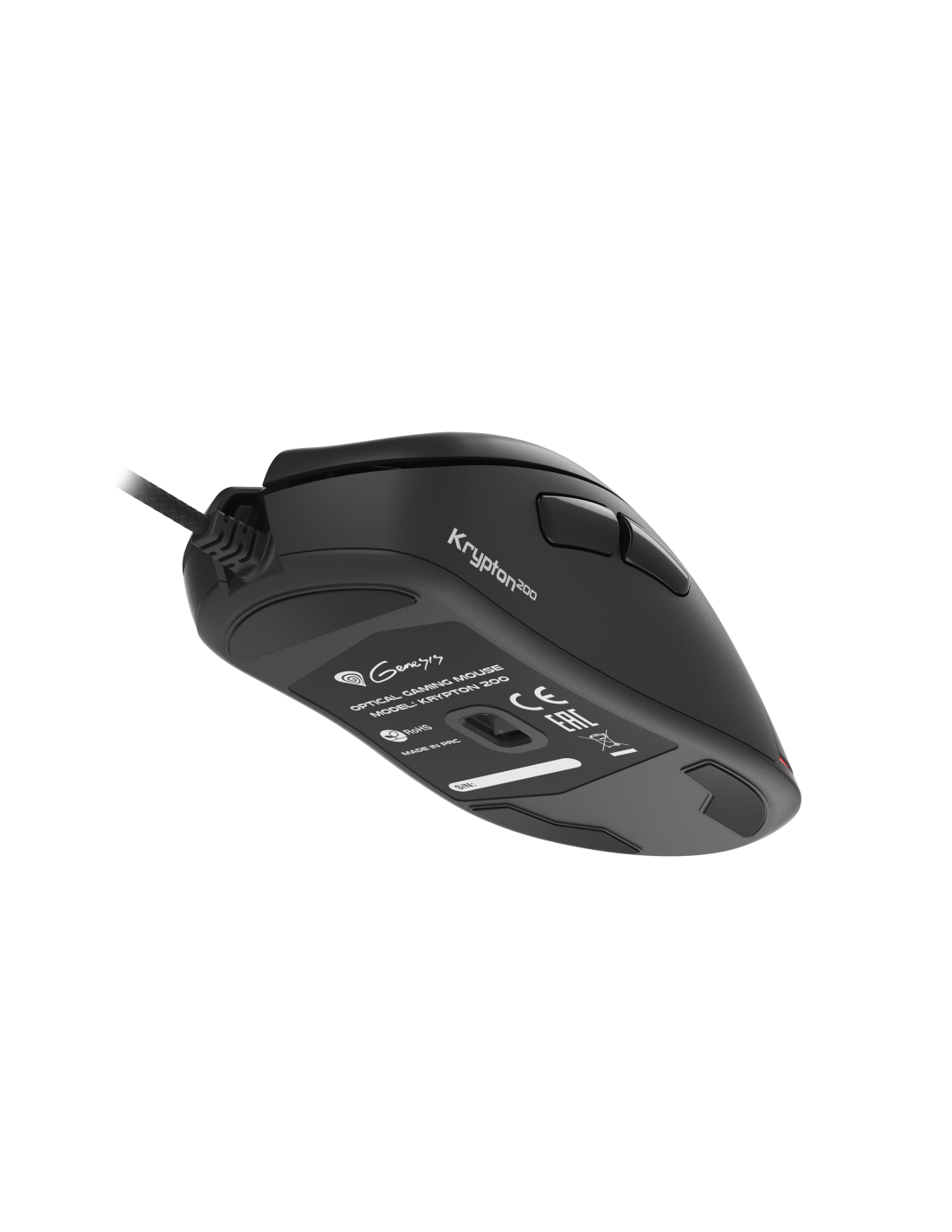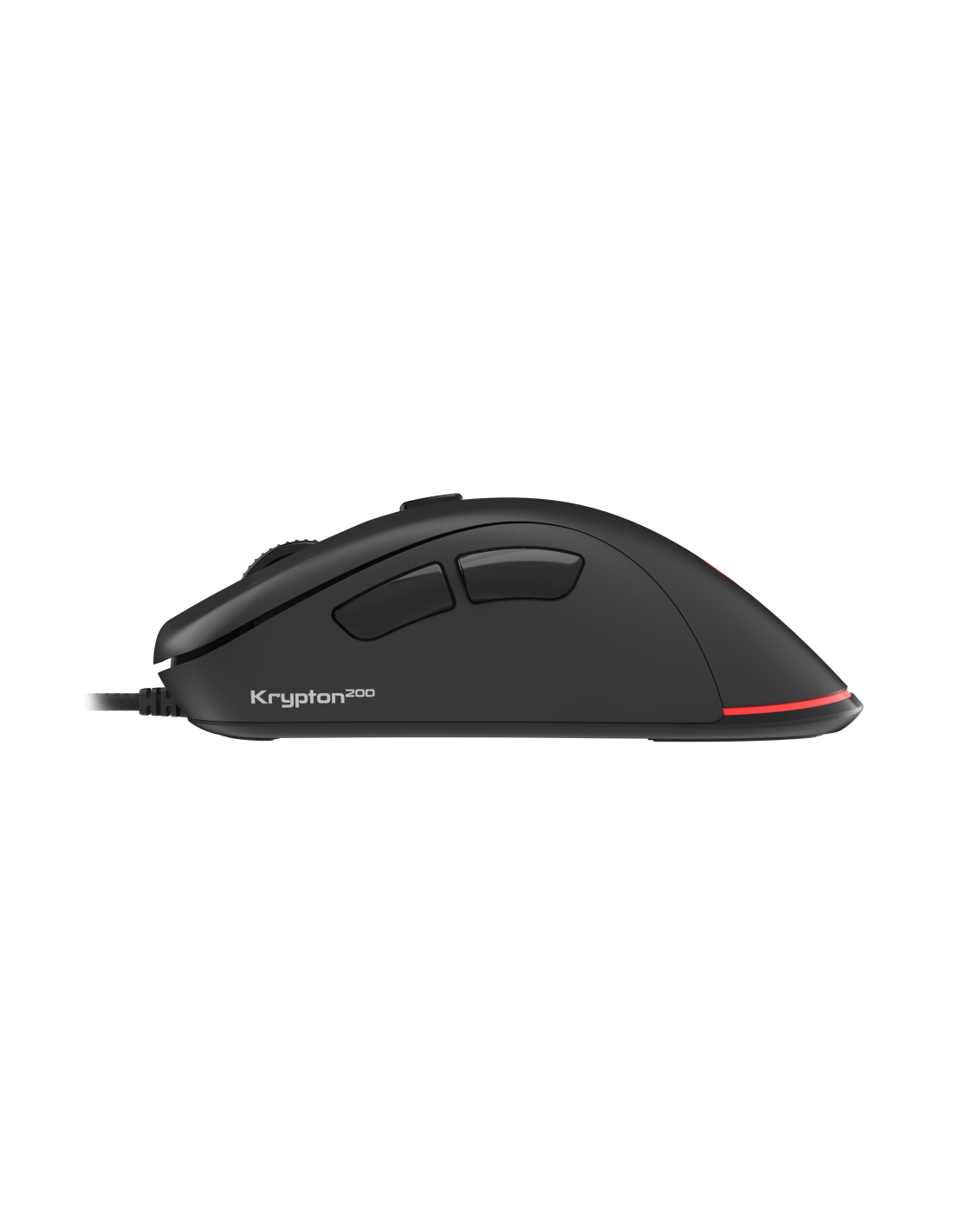 GENESIS Krypton 200. Factor de forma: mano derecha. Tecnología de detección de movimientos: Óptico, Interfaz del dispositivo: USB tipo A, Resolución de movimiento: 6400 DPI, Velocidad de cuadro: 6666 pps, Tipo de botones: Botones presionados, Cantidad de botones: 6, Tipo de desplazamiento: Rueda, Aceleración (máx.): 22 G. Iluminación de color: Multi. Fuente de energía: Cable. Color del producto: Negro