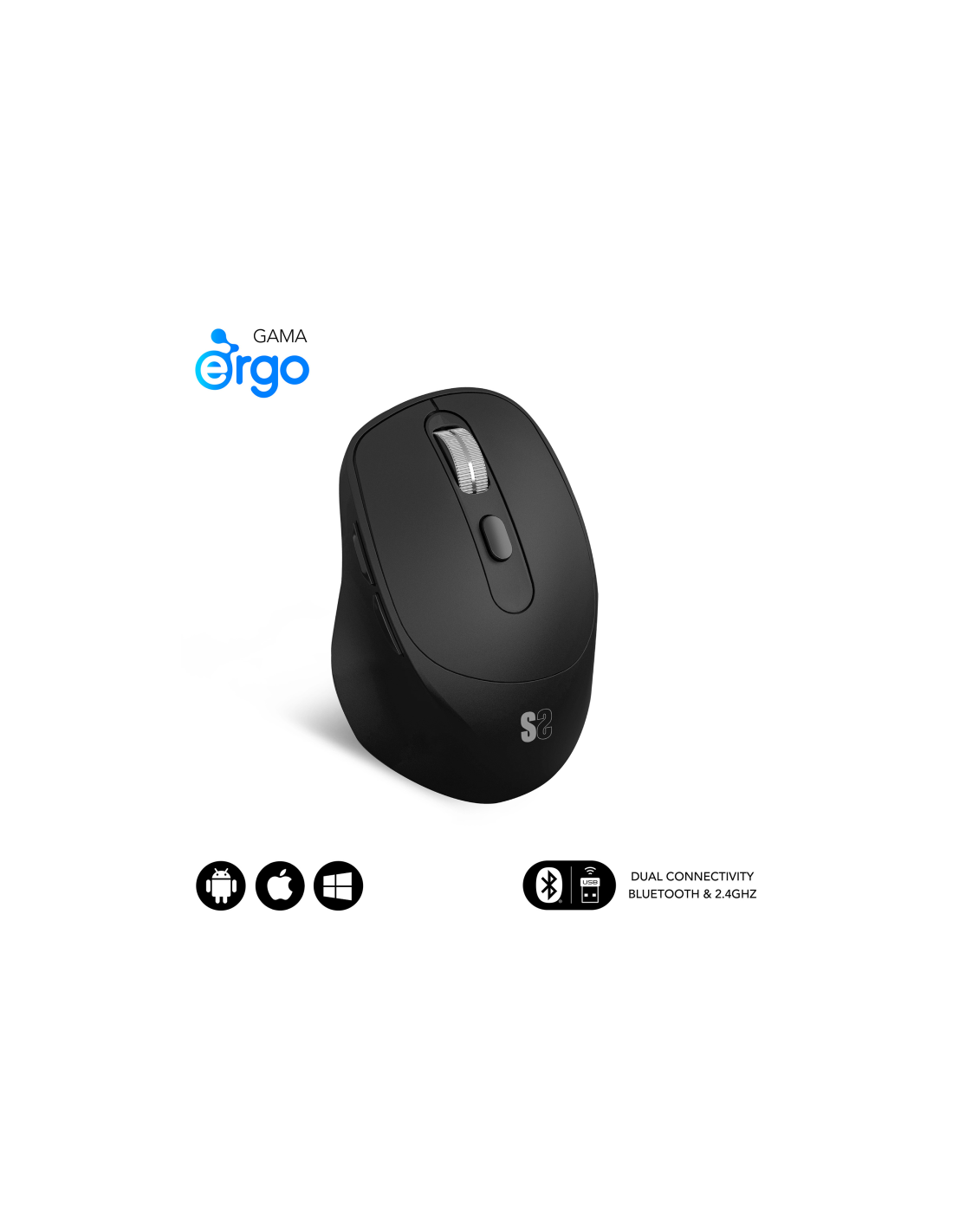 SUBBLIM Ratón CURVE ERGO DUAL MOUSE BATTERY BLACK. Factor de forma: mano derecha. Tecnología de detección de movimientos: Óptico, Interfaz del dispositivo: Bluetooth + USB Type-A, Resolución de movimiento: 2400 DPI, Tipo de botones: Botones presionados, Cantidad de botones: 6, Tipo de desplazamiento: Rueda. Fuente de energía: Baterías. Color del producto: Negro