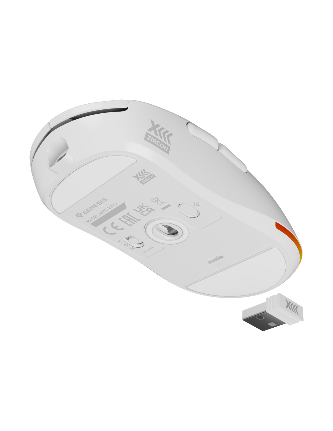 No nos hemos olvidado de las funciones adicionales que harán que utilizar el GENESIS Zircon XIII sea rápido y sencillo. El control deslizante situado en la parte inferior te permitirá cambiar entre el modo con cable, el modo inalámbrico y apagar la retroiluminación. Por otro lado, un botón dedicado te permitirá cambiar el modo de retroiluminación. Combinado con la memoria integrada y el software avanzado, te ofrece posibilidades y libertad de uso casi ilimitadas.