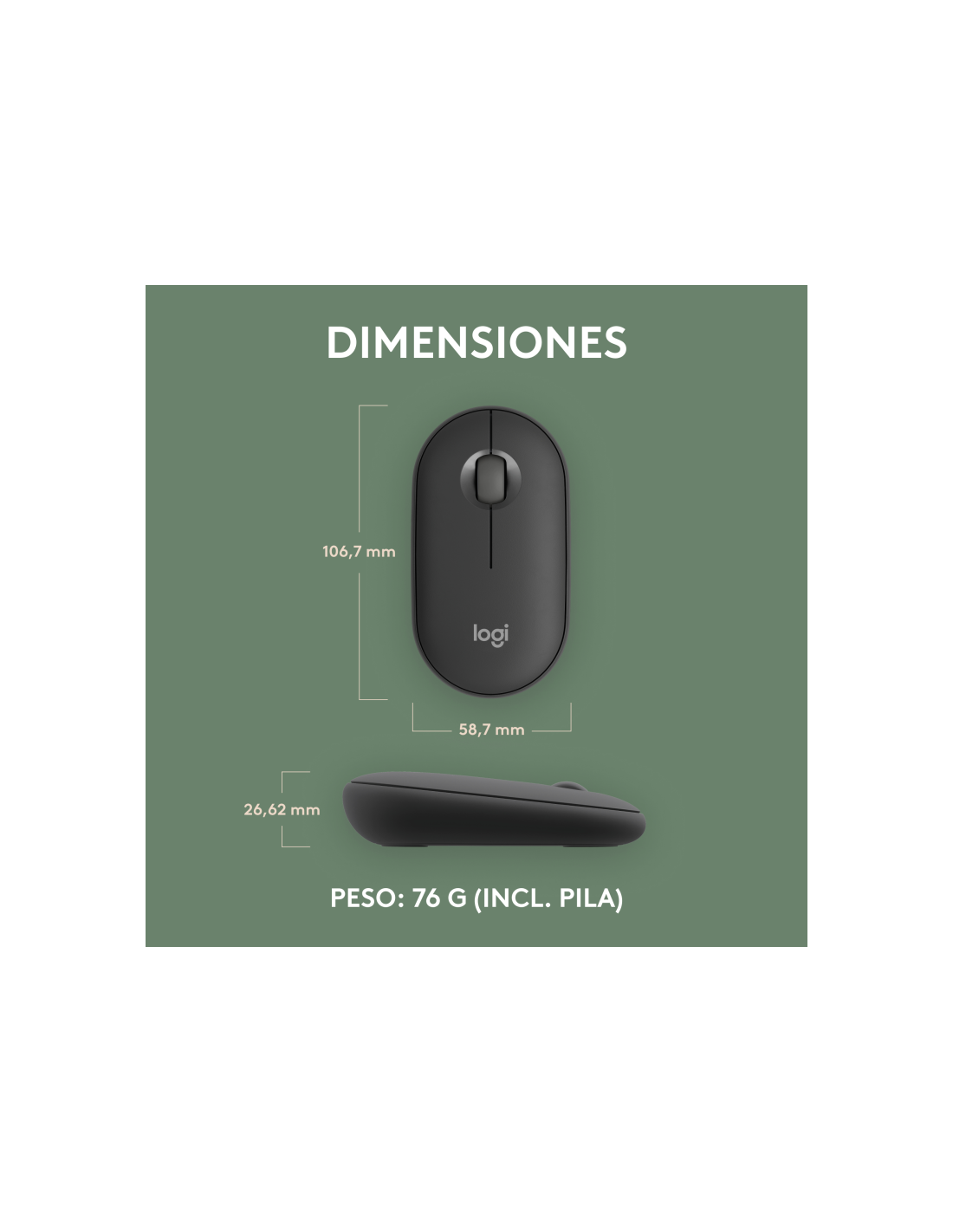 Logitech 910-007015. Factor de forma: Ambidextro. Tecnología de detección de movimientos: Óptico, Interfaz del dispositivo: RF Wireless + Bluetooth, Resolución de movimiento: 4000 DPI, Tipo de botones: Botones presionados, Cantidad de botones: 3, Tipo de desplazamiento: Rueda. Fuente de energía: Baterías. Color del producto: Grafito