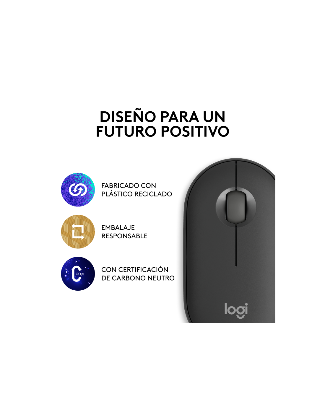 Desafía lo aburrido con el diseño estilizado, portátil y ligero del emblemático Pebble Mouse 2 M350s fabricado con plástico reciclado[1]. Alterna fácilmente entre 3 dispositivos con el botón Easy-Switch.