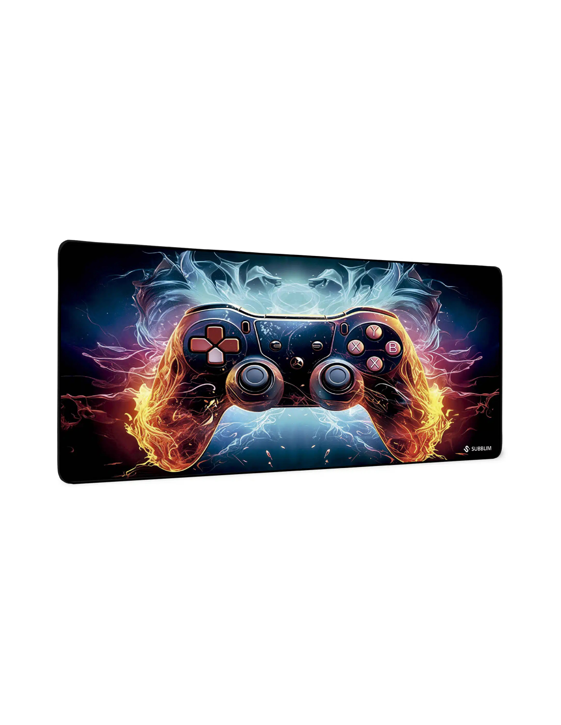 SUBBLIM GameCore XL Mouse Pad 900 × 400 × 3 mm – Alfombrilla Gaming XXL con Base de Goma 85 % Antideslizante, Bordes Cosidos, Superficie Micro-Texturizada, Diseño Mando Fire-&-Ice, Impermeable y Lavable