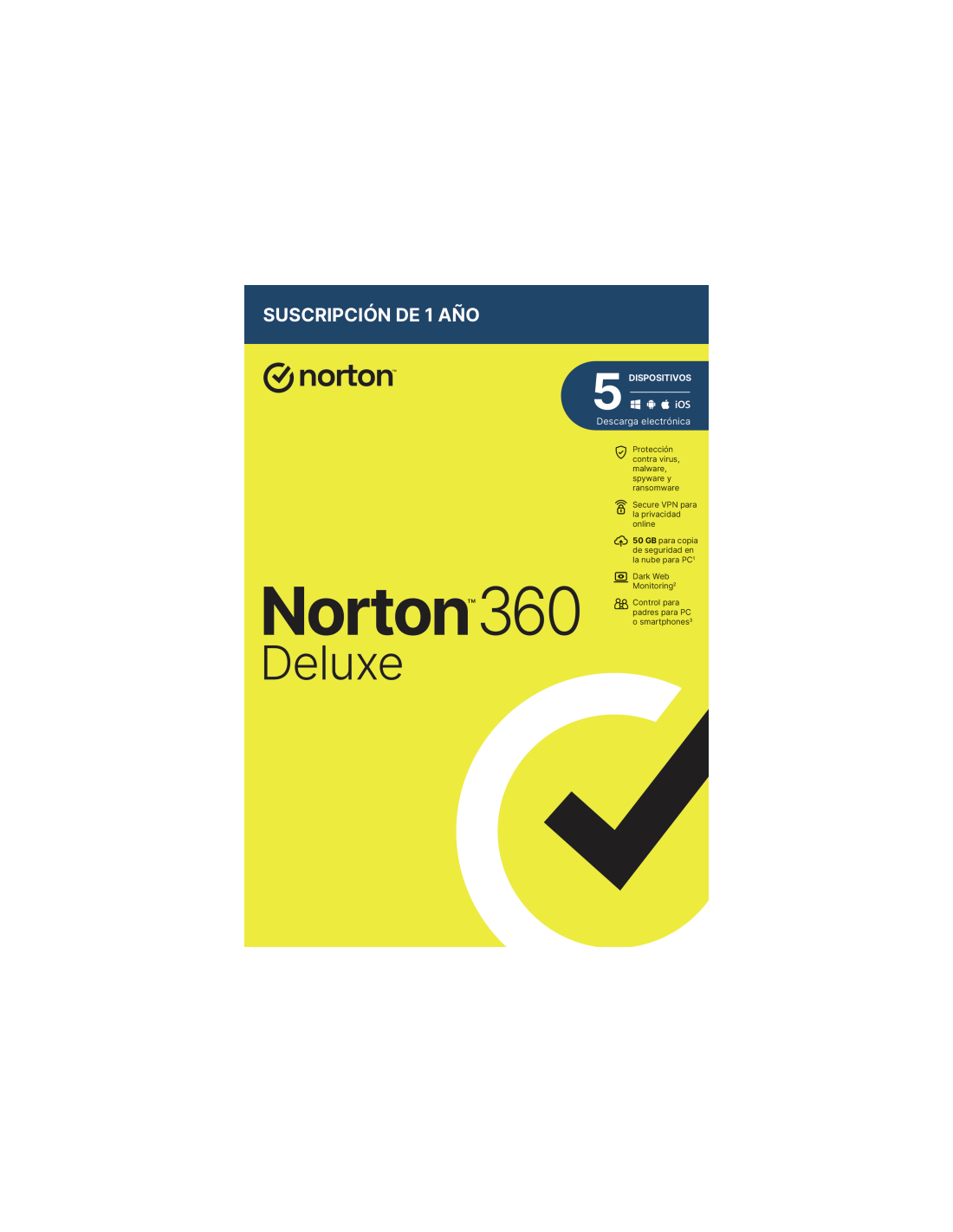 Norton 360 Deluxe. Cantidad de licencia: 1 licencia(s), Periodo de licenciamiento: 1 año(s), Tipo de licencia: Base, Tipo de software: Caja. Tipo de distribución: Soporte físico