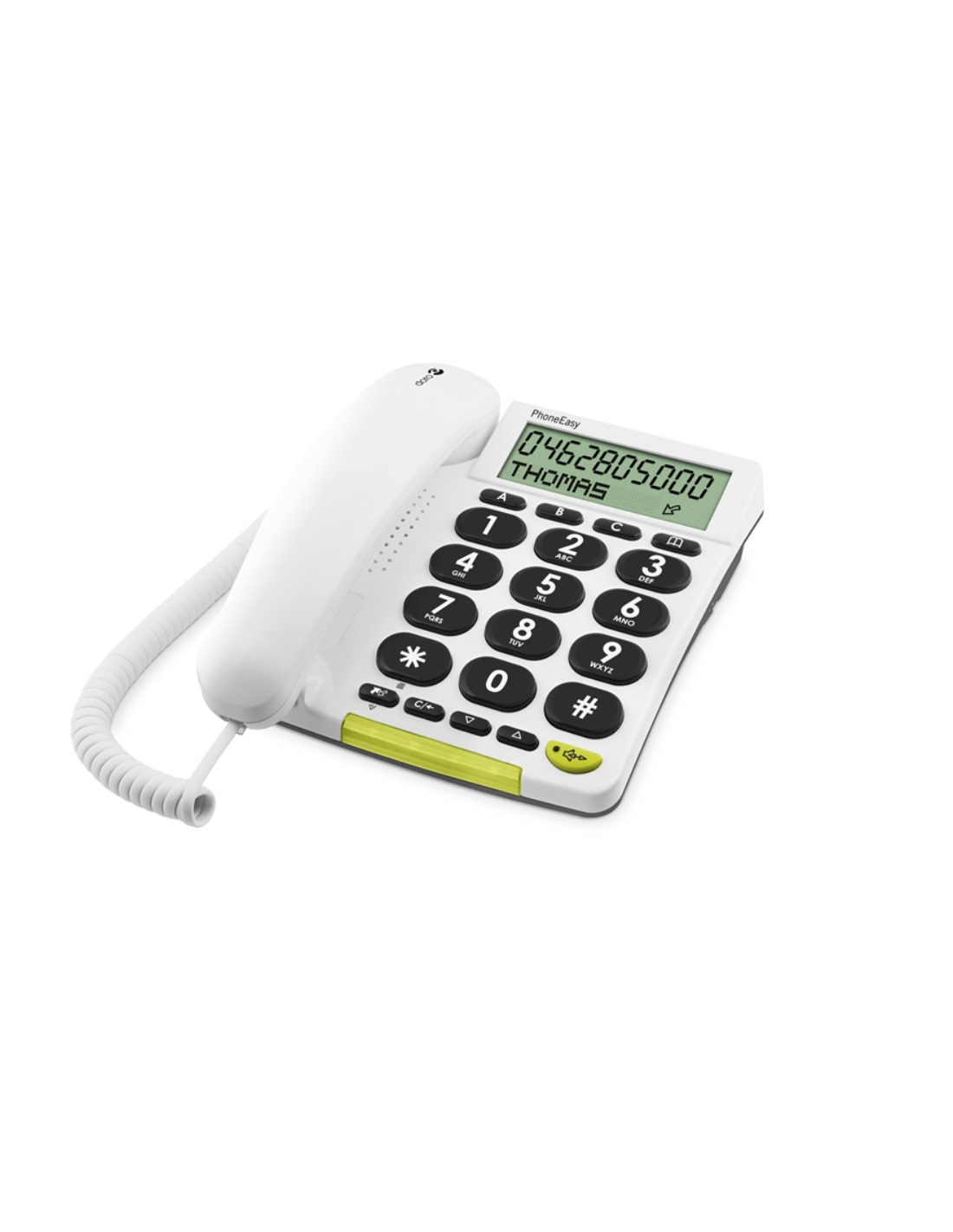 Doro 312cs. Tipo: Teléfono analógico, Tipo de auricular: Terminal con conexión por cable. Altavoz, Capacidad de lista de direcciones: 30 entradas. Identificador de llamadas. Color del producto: Blanco