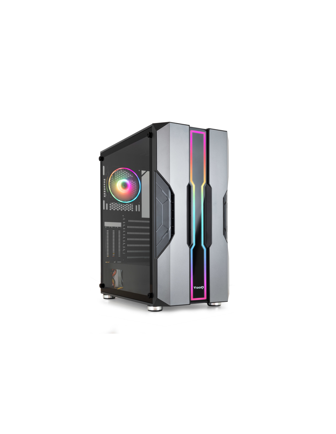 TooQ Caja Semitorre Gaming TQGCC103-B “NIGHTCITY” Negra. Factor de forma: Midi Tower, Tipo: PC, Color del producto: Negro, Plata. Ventiladores frontales instalados: 1x 120 mm, Diámetro de ventiladores frontales soportados: 120,140 mm, Ventiladores traseros instalados: 1x 120 mm. Tamaños de disco duro soportados: 2.5,3.5". Ancho: 225 mm, Profundidad: 458 mm, Altura: 400 mm. Ancho del paquete: 530 mm, Profundidad del paquete: 295 mm, Altura del paquete: 465 mm