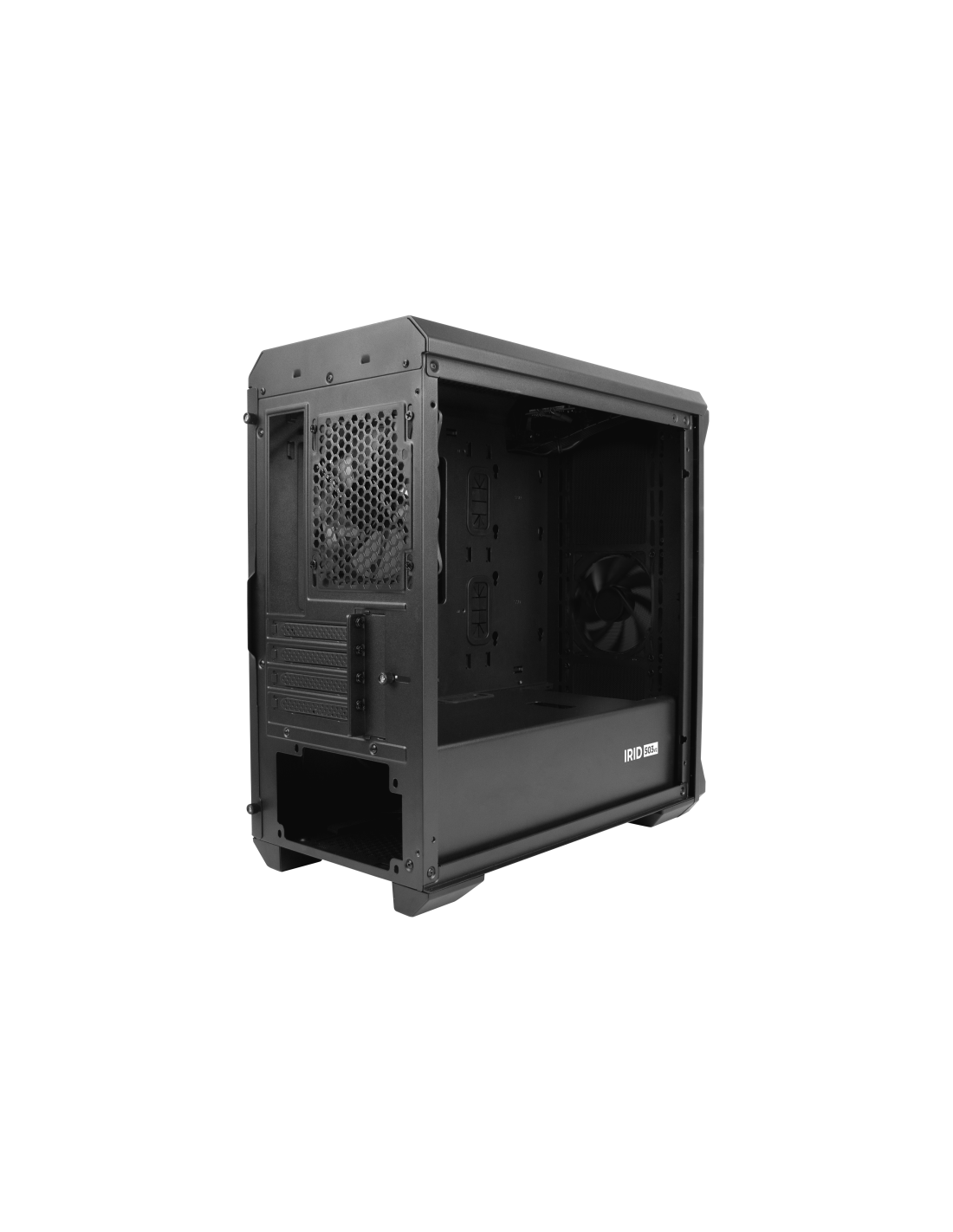 GENESIS Irid 503. Factor de forma: Micro Torre, Tipo: PC, Color del producto: Negro. Ubicación de fuente de alimentación: Fondo. Ventiladores frontales instalados: 1x 120 mm, Diámetro de ventiladores frontales soportados: 120,140 mm, Ventiladores traseros instalados: 1x 120 mm. Tamaños de disco duro soportados: 2.5,3.5". Ancho: 210 mm, Profundidad: 430 mm, Altura: 430 mm