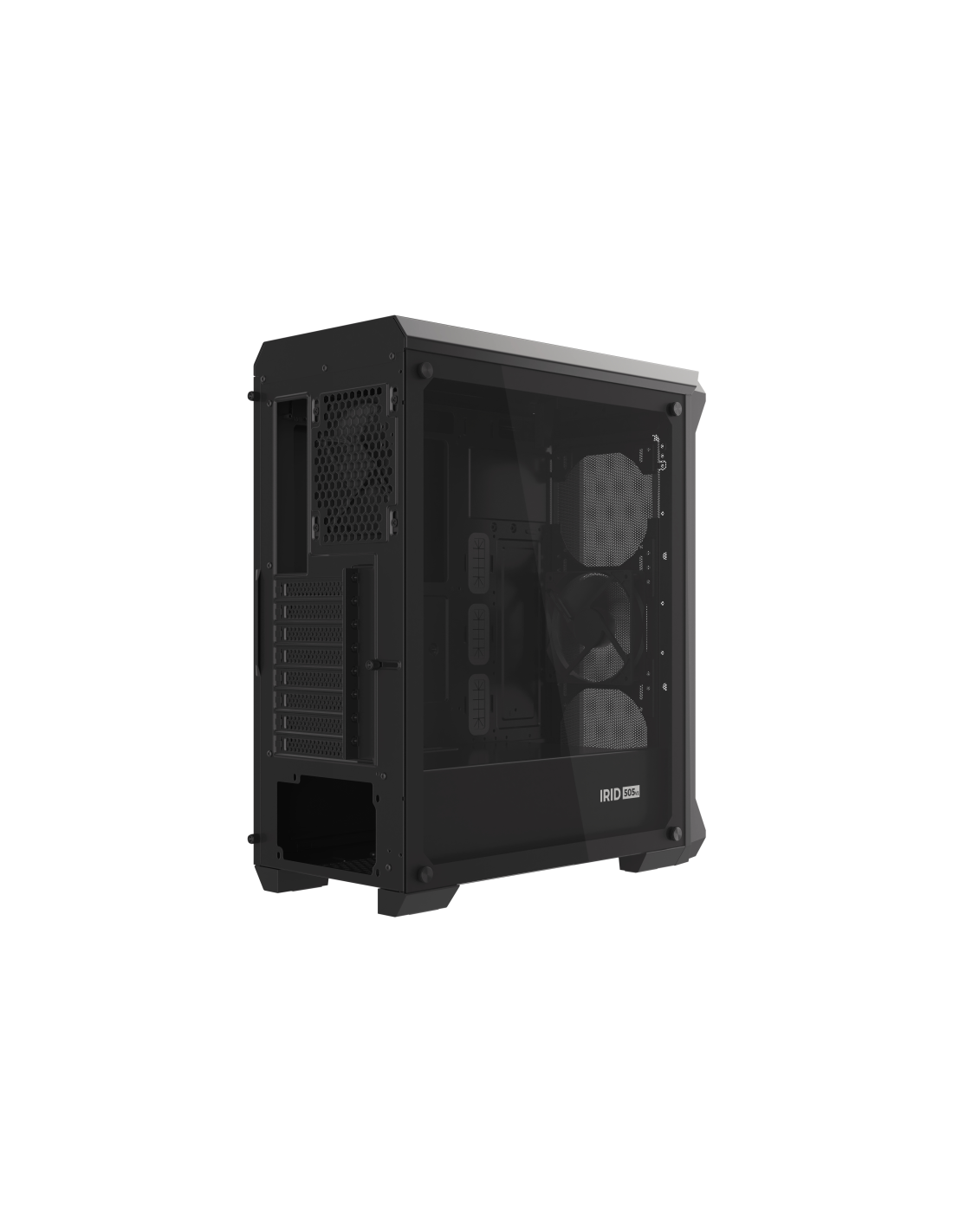 GENESIS Irid 505. Factor de forma: Midi Tower, Tipo: PC, Color del producto: Negro. Ubicación de fuente de alimentación: Fondo. Ventiladores frontales instalados: 1x 120 mm, Diámetro de ventiladores frontales soportados: 120,140 mm, Ventiladores traseros instalados: 1x 120 mm. Tamaños de disco duro soportados: 2.5,3.5". Ancho: 220 mm, Profundidad: 447 mm, Altura: 510 mm