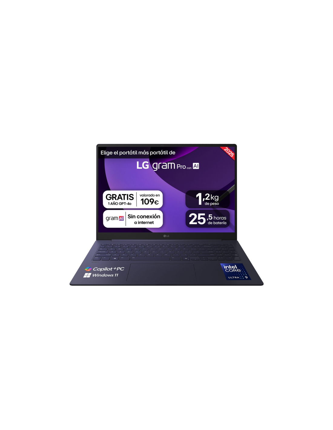 LG Gram Pro 16Z90TS-G.AU99B. Tipo de producto: Portátil, Factor de forma: Concha. Familia de procesador: Intel Core Ultra 9, Modelo del procesador: 288V, Frecuencia del procesador: 3,3 GHz. Diagonal de la pantalla: 40,6 cm (16"), Tipo HD: 2.5K, Resolución de la pantalla: 2560 x 1600 Pixeles. Memoria interna: 32 GB, Tipo de memoria interna: LPDDR5x-SDRAM. Capacidad total de almacenaje: 1 TB, Unidad de almacenamiento: SSD. Modelo de adaptador gráfico incorporado: Intel Arc Graphics 140V. Sistema operativo ins