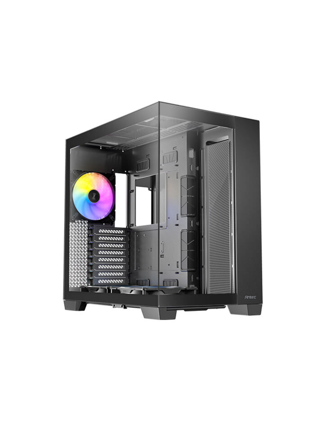 Antec C8 ARGB. Factor de forma: Full Tower, Tipo: PC, Color del producto: Negro. Ubicación de fuente de alimentación: Fondo. Diámetro de ventiladores secundarios soportados: 120,140 mm, Diámetro de ventiladores traseros soportados: 120,140 mm, Diámetros de ventiladores superiores soportados: 120,140,160 mm. Tamaños de disco duro soportados: 2.5,3.5". Ancho: 303 mm, Profundidad: 464 mm, Altura: 476 mm