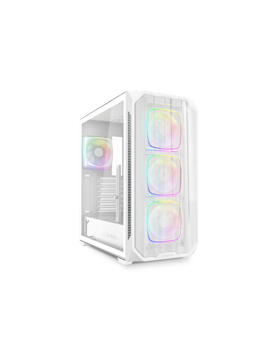 Sharkoon AK5M RGB. Factor de forma: Midi Tower, Tipo: PC, Color del producto: Blanco. Ventiladores frontales instalados: 3x 120 mm, Diámetro de ventiladores frontales soportados: 120 mm, Diámetro de ventiladores secundarios soportados: 120,140 mm. Tamaños de disco duro soportados: 2.5,3.5". Ancho: 225 mm, Profundidad: 465 mm, Altura: 485 mm