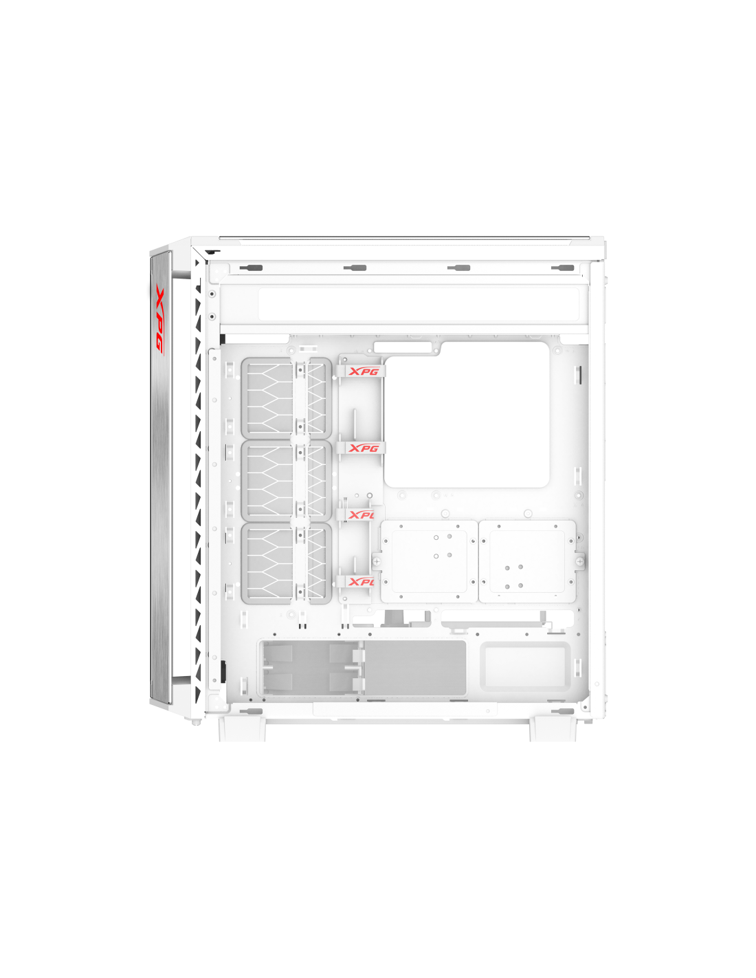 XPG BATTLECRUISER II ST Torre Media Blanca. Factor de forma: Midi Tower, Tipo: PC, Color del producto: Blanco. Ventiladores frontales instalados: 3x 120 mm, Diámetro de ventiladores frontales soportados: 120,140 mm, Ventiladores traseros instalados: 1x 120 mm. Tamaños de disco duro soportados: 2.5,3.5". Ancho: 225 mm, Profundidad: 506 mm, Altura: 550 mm. Ancho del paquete: 339 mm, Profundidad del paquete: 643 mm, Altura del paquete: 615 mm