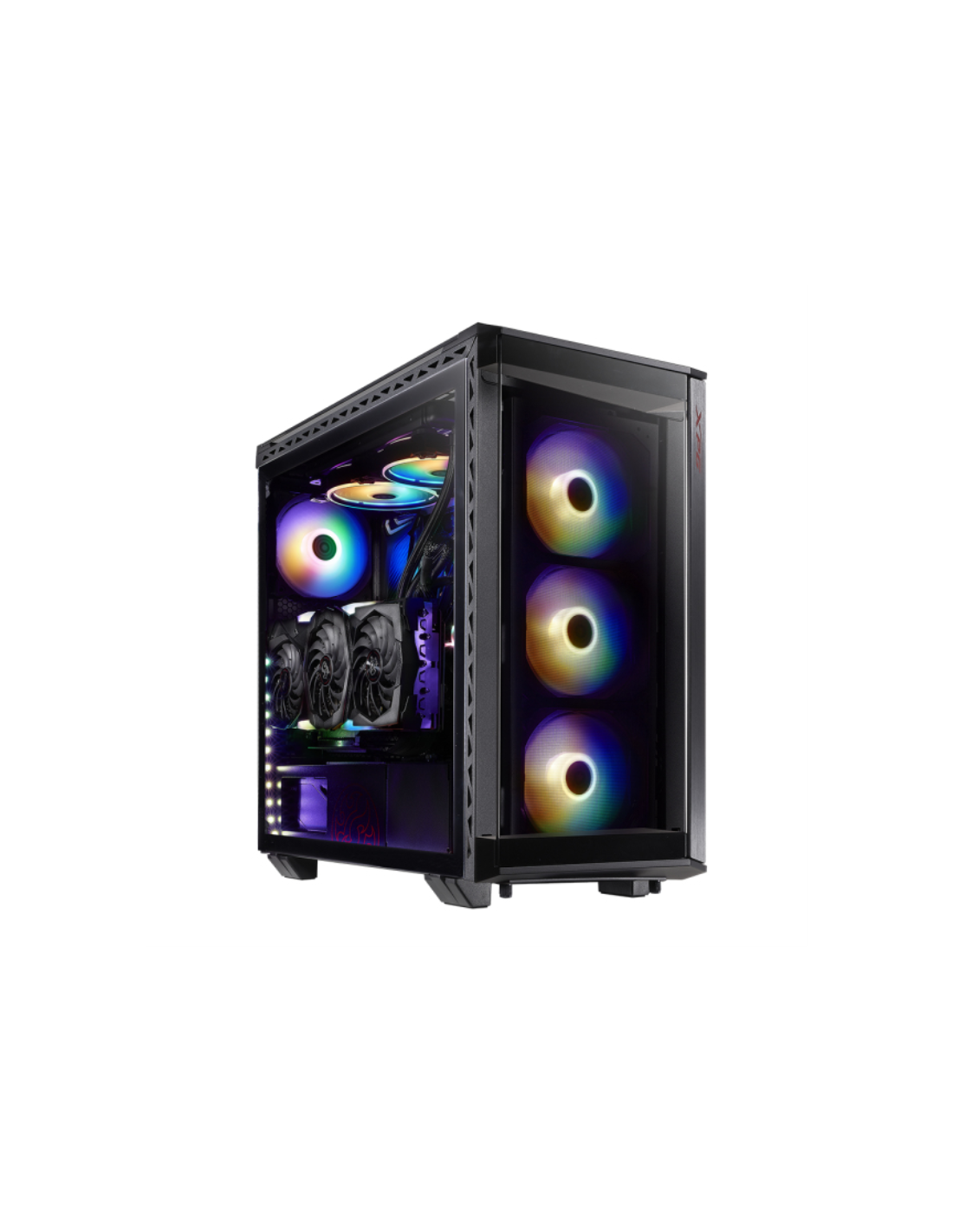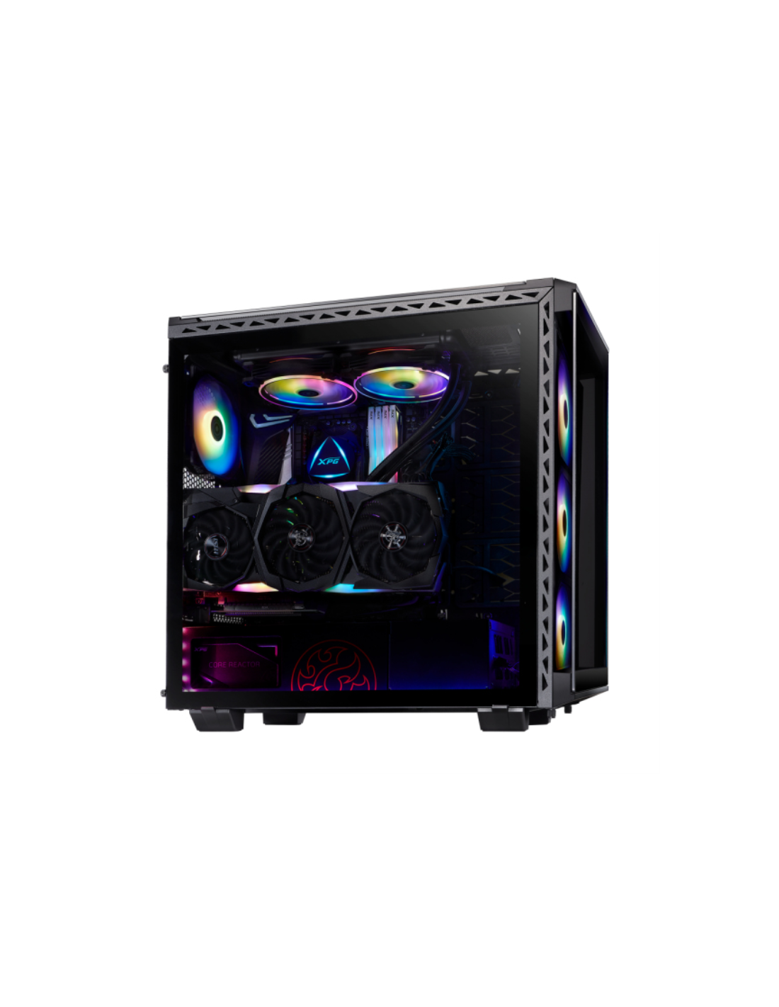 Fabricado con metal resistente y cristal templado en cuatro lados, el XPG BATTLECRUISER es un superchasis de media torre de aspecto épico. Mejorado con cuatro ventiladores ARGB preinstalados con 13 modos de iluminación, incluyendo el modo Music Sync*.