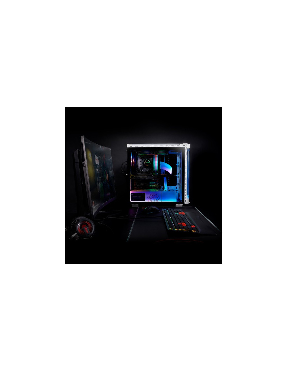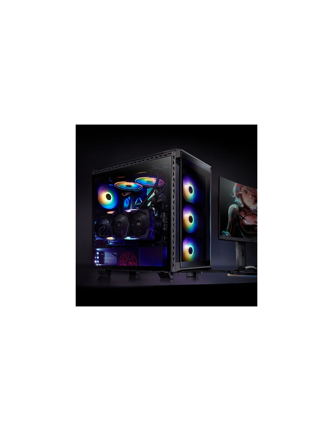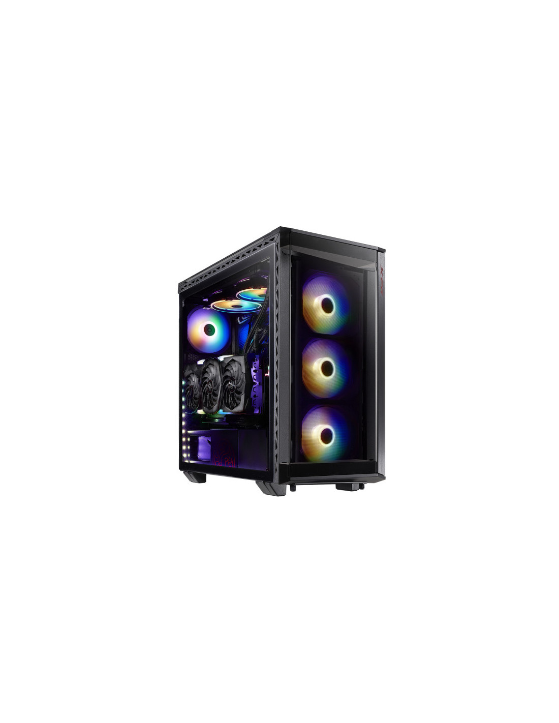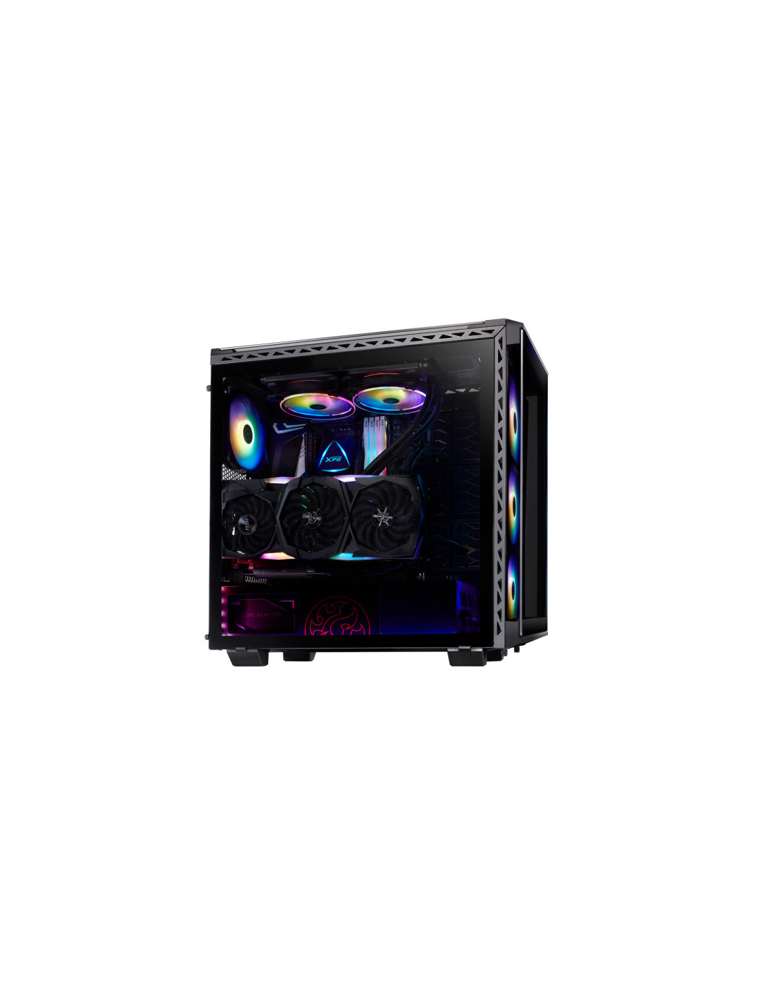 Fabricado con metal resistente y cristal templado en cuatro lados, el XPG BATTLECRUISER es un superchasis de media torre de aspecto épico. Mejorado con cuatro ventiladores ARGB preinstalados con 13 modos de iluminación, incluyendo el modo Music Sync*.