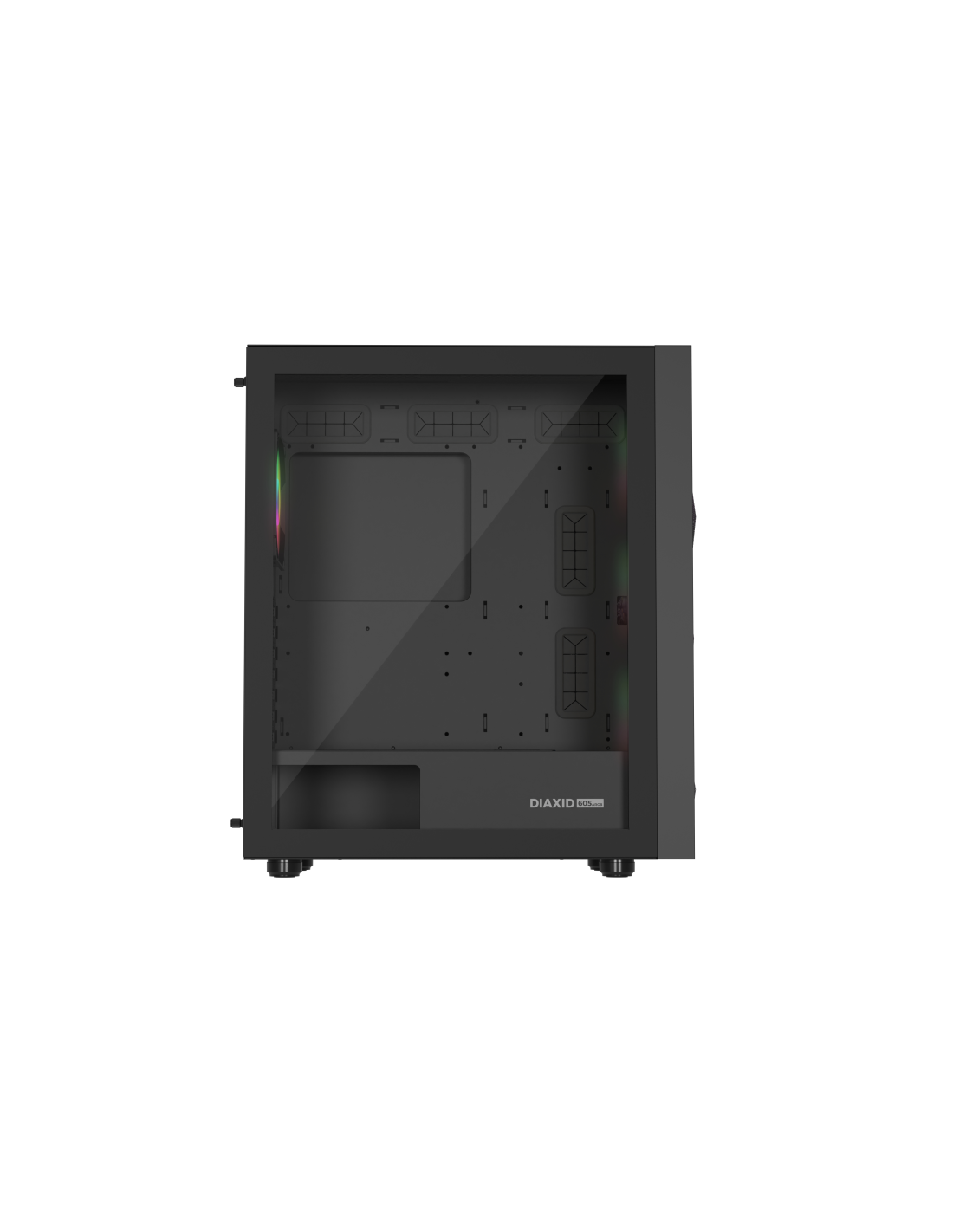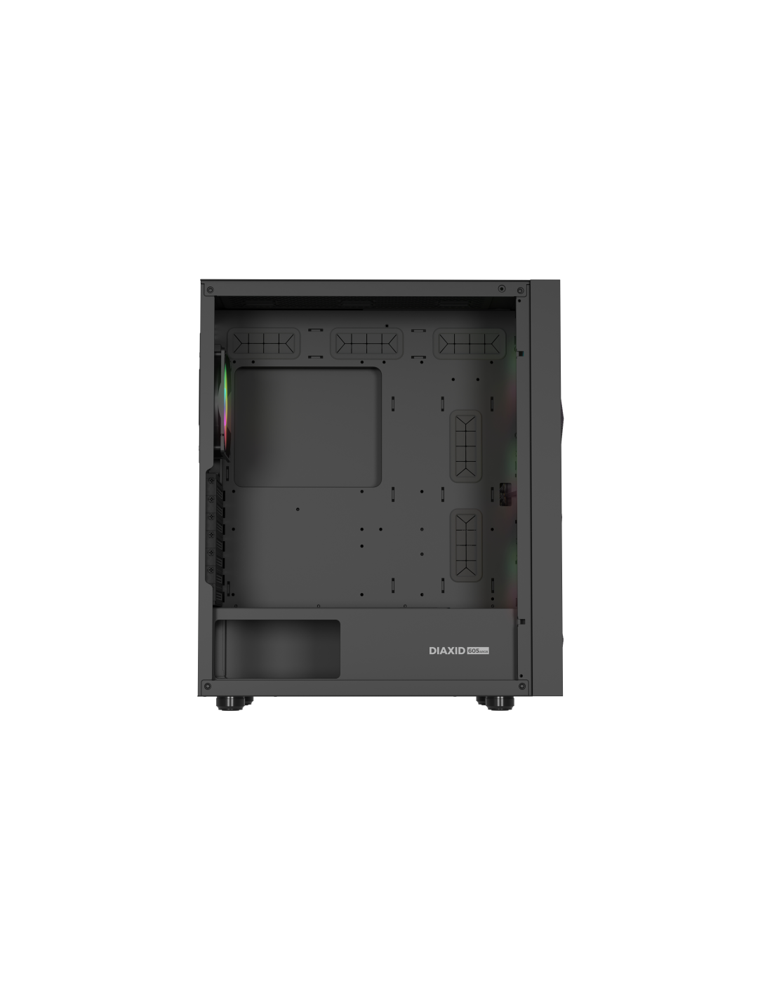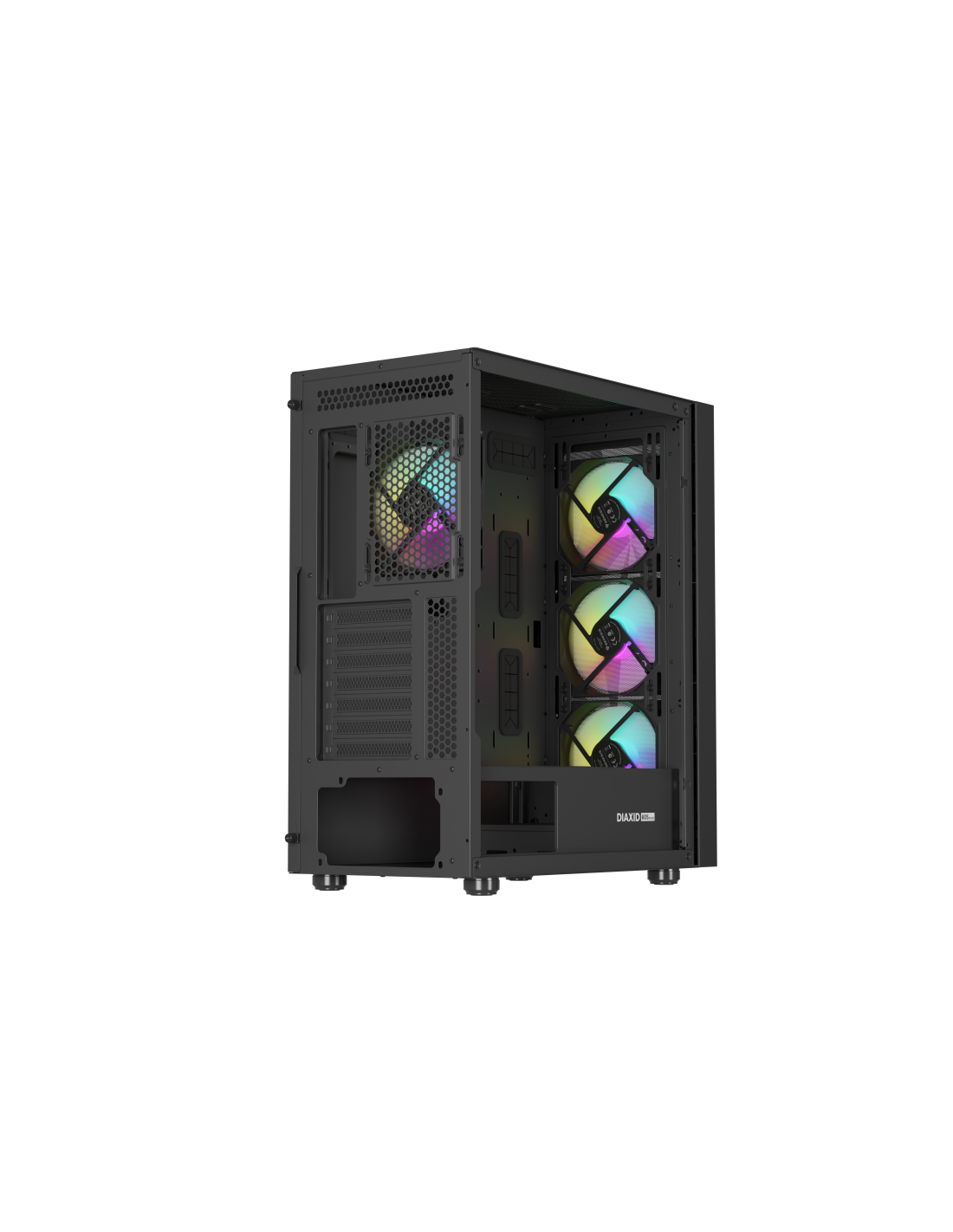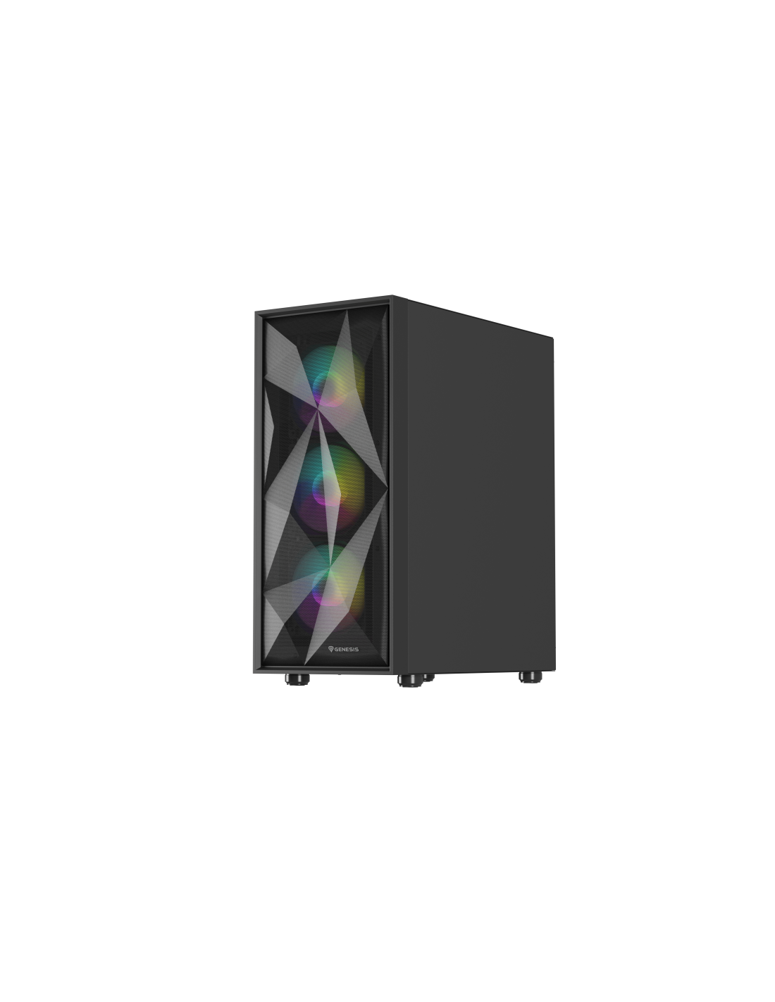 GENESIS Diaxid 605 ARGB. Factor de forma: Midi Tower, Tipo: PC, Color del producto: Negro. Ubicación de fuente de alimentación: Fondo, Factores de forma de la fuente de alimentación compatibles: ATX. Ventiladores frontales instalados: 3x 120 mm, Diámetro de ventiladores frontales soportados: 120,140 mm, Ventiladores traseros instalados: 1x 120 mm. Tamaños de disco duro soportados: 2.5,3.5". Ancho: 217 mm, Profundidad: 420 mm, Altura: 466 mm