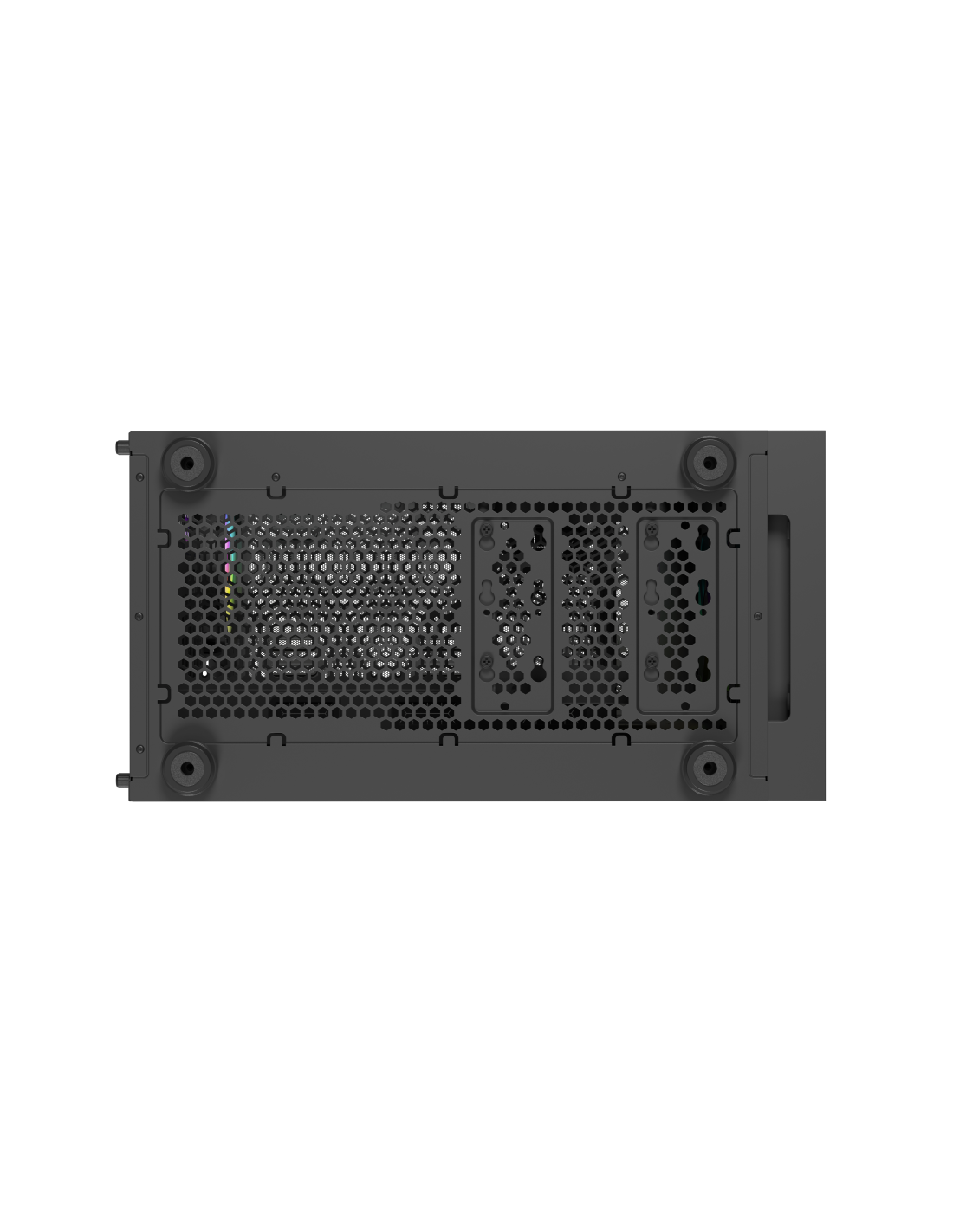 Con GENESIS Diaxid 605 ARGB no tendrás que preocuparte por el polvo. Los filtros magnéticos situados en la parte superior e inferior de la carcasa protegerán tus componentes de él. Si es necesario, puedes limpiarlos fácilmente con un paño húmedo, deshaciéndote de la suciedad en sólo unos segundos. El conjunto se complementa con un panel de malla frontal, cuya malla es más pequeña (~0,8 mm) que en los filtros estándar. Una mayor densidad se traduce en las ventajas de unas mejores propiedades de filtrado y menos polvo en el interior.