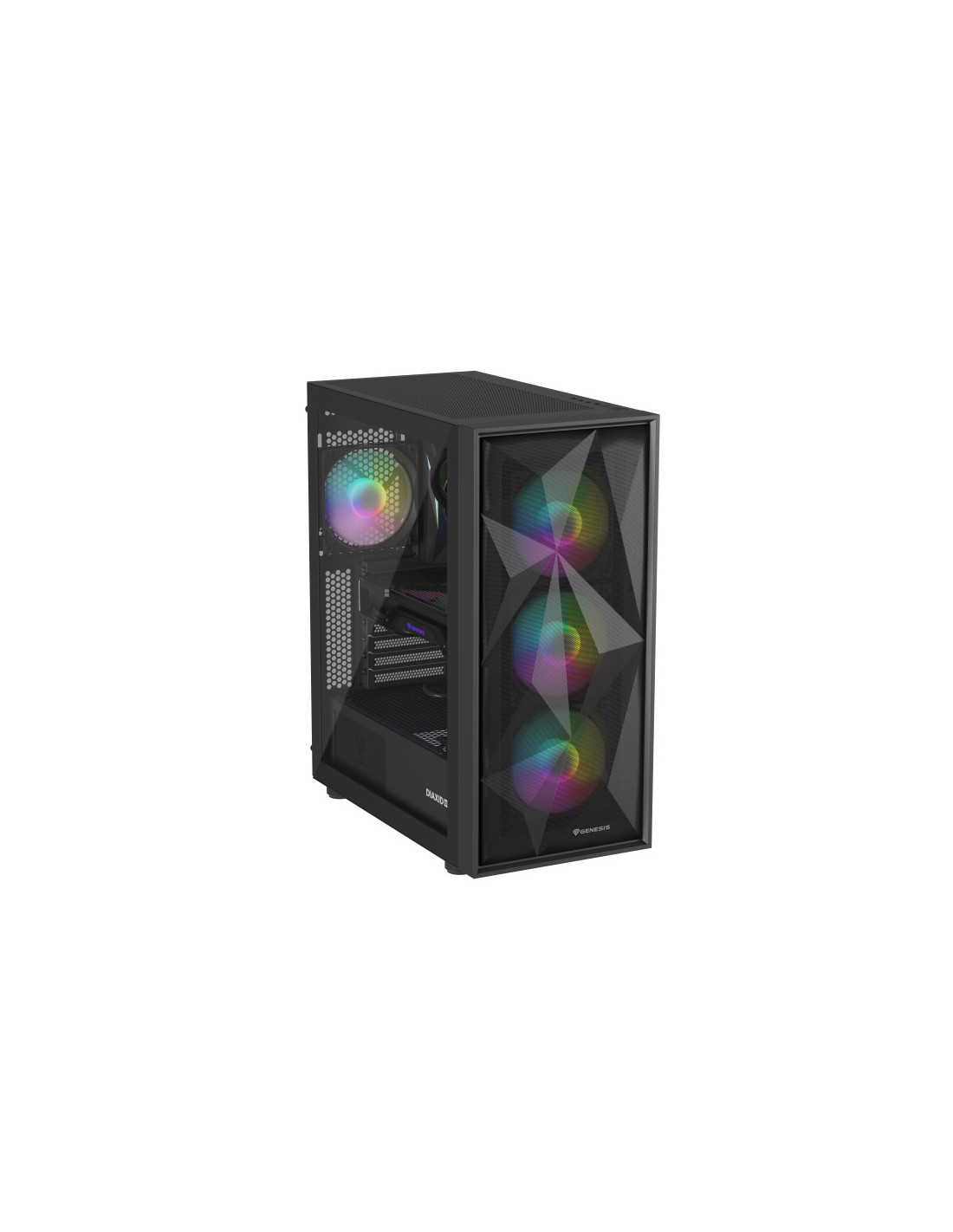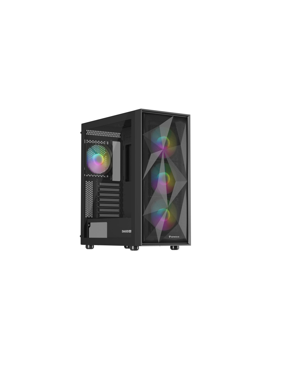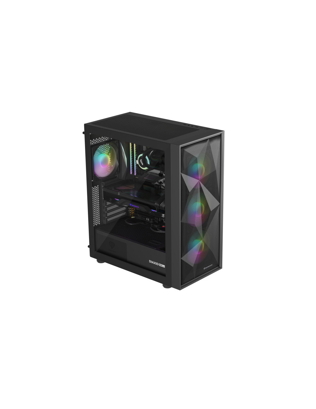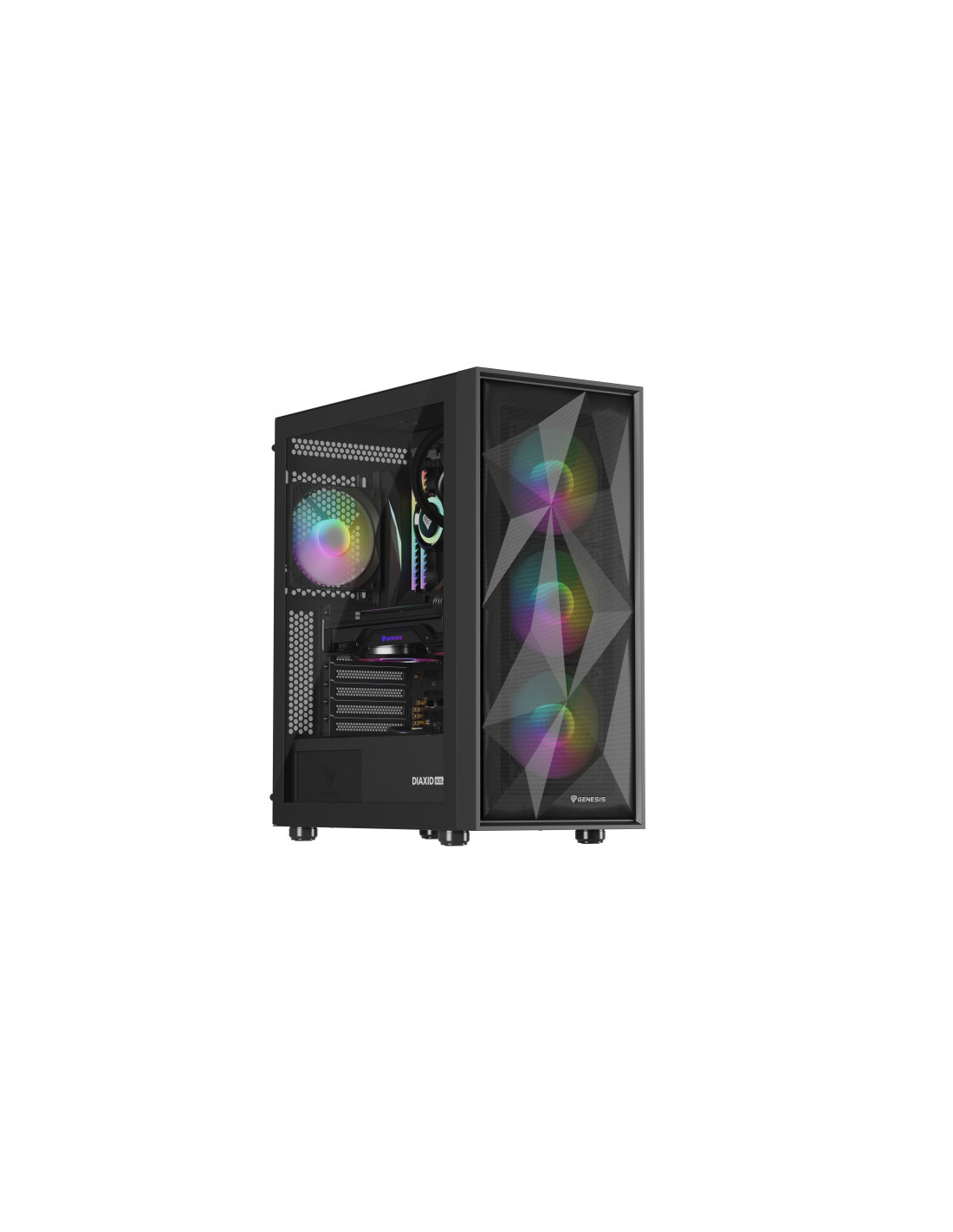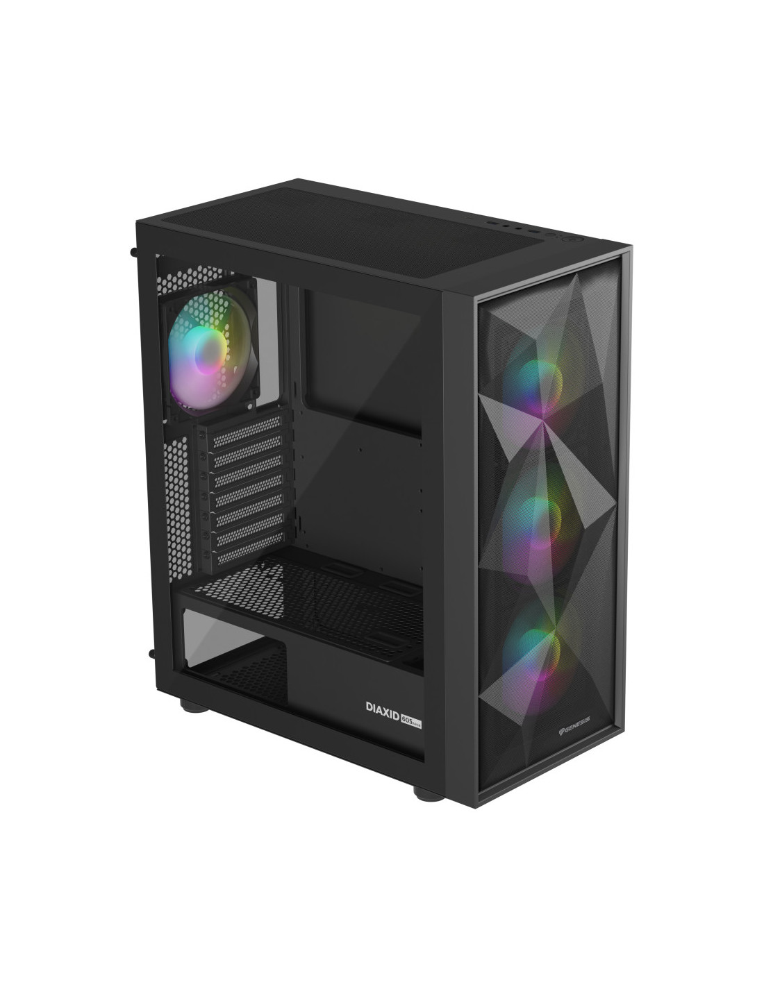 Duradera, elegante, eficiente. ¿En pocas palabras? GENESIS Diaxid 605 ARGB. Conoce la carcasa que hemos creado para los amantes de las bajas temperaturas, el alto rendimiento y el estilo único. Compatibilidad con refrigeradores AIO 420, hasta 4 ventiladores GENESIS Oxal 120 ARGB y filtrado total del polvo. Además, amplias opciones de montaje para los componentes. Acepta el reto y comprueba lo fácil que es montar el PC de tus sueños con la GENESIS Diaxid 605 ARGB.