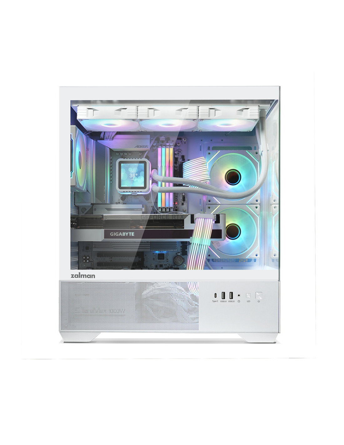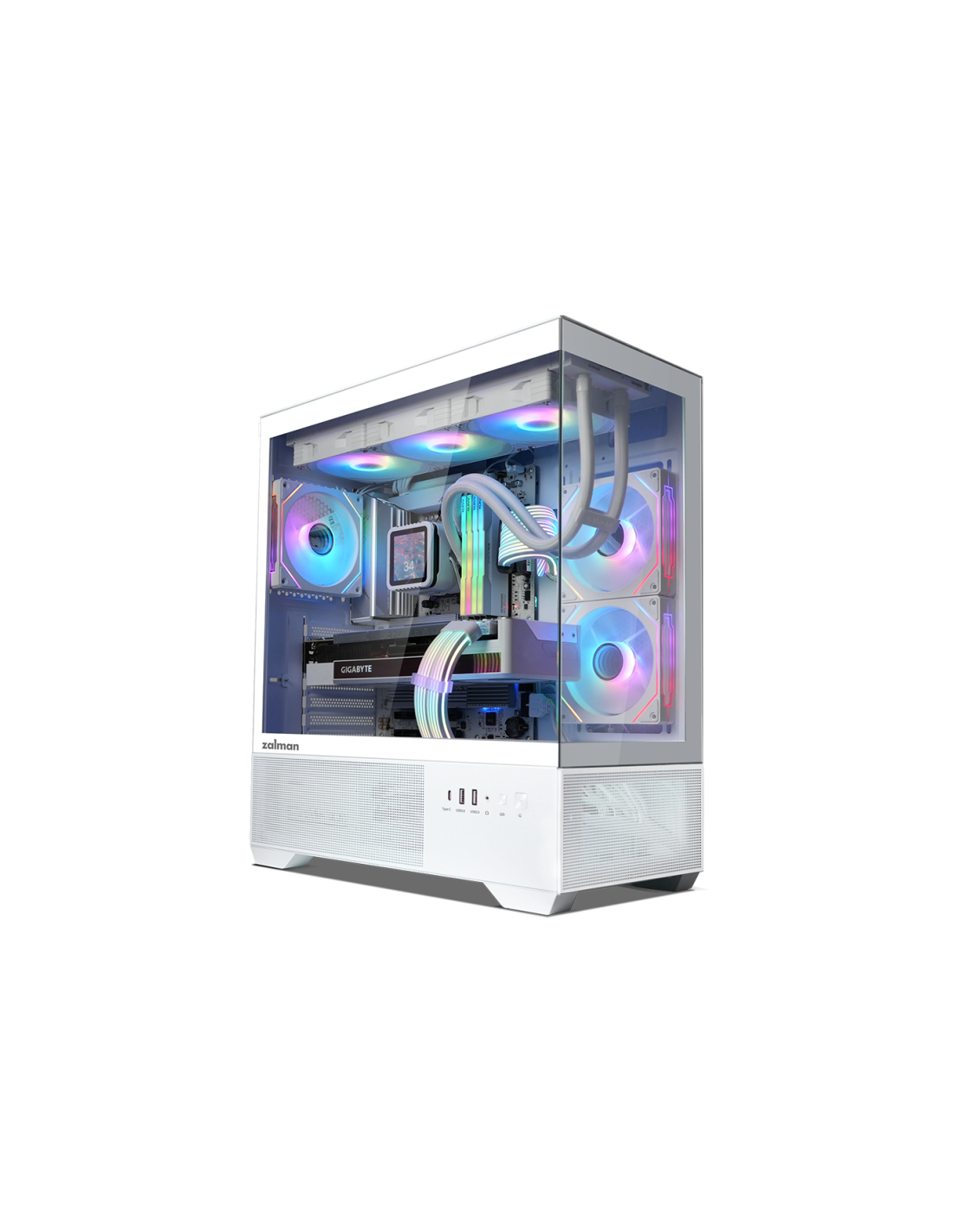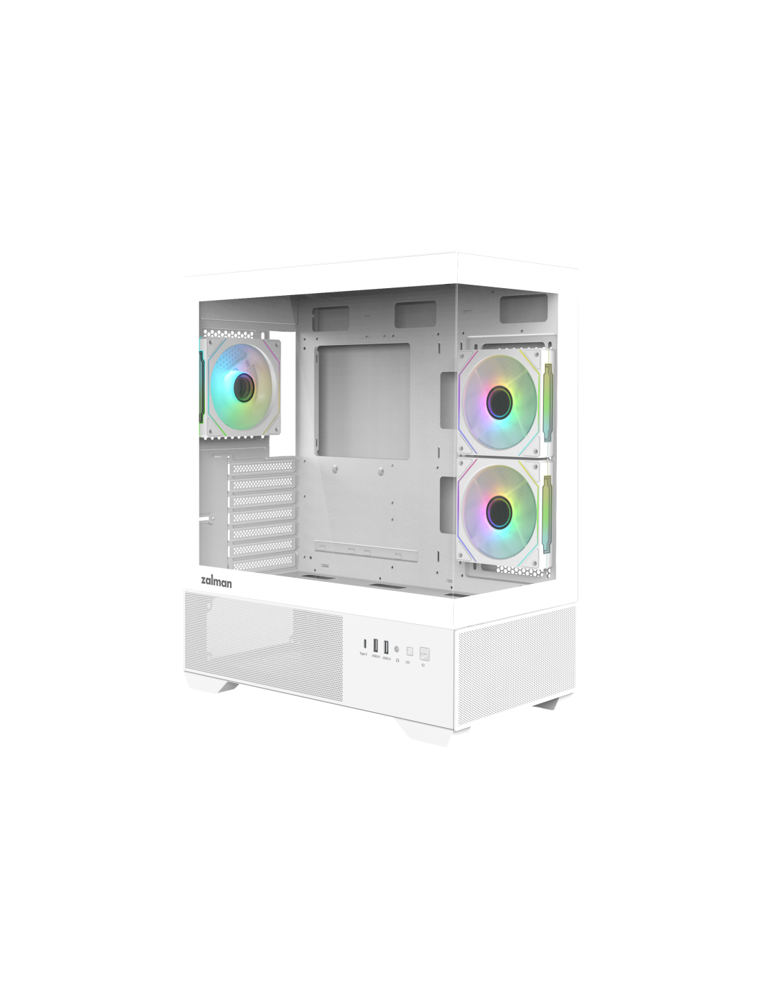 Zalman CHRONIX WHITE. Factor de forma: Midi Tower, Tipo: PC, Color del producto: Blanco. Ventiladores laterales instalados: 2x 120 mm, Diámetro de ventiladores secundarios soportados: 120 mm, Ventiladores traseros instalados: 1x 120 mm. Tamaños de disco duro soportados: 3.5", Factor de forma de disco SSD: 2.5". Ancho: 215 mm, Profundidad: 436 mm, Altura: 487 mm
