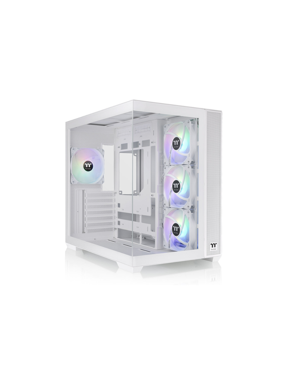 Thermaltake View 380 TG ARGB Snow. Factor de forma: Midi Tower, Tipo: PC, Color del producto: Blanco. Ubicación de fuente de alimentación: Lado, Factores de forma de la fuente de alimentación compatibles: PS2. Ventiladores laterales instalados: 3x 120 mm, Diámetro de ventiladores secundarios soportados: 120,140 mm, Ventiladores traseros instalados: 1x 120 mm. Tamaños de disco duro soportados: 2.5,3.5". Ancho: 285 mm, Profundidad: 442 mm, Altura: 410 mm
