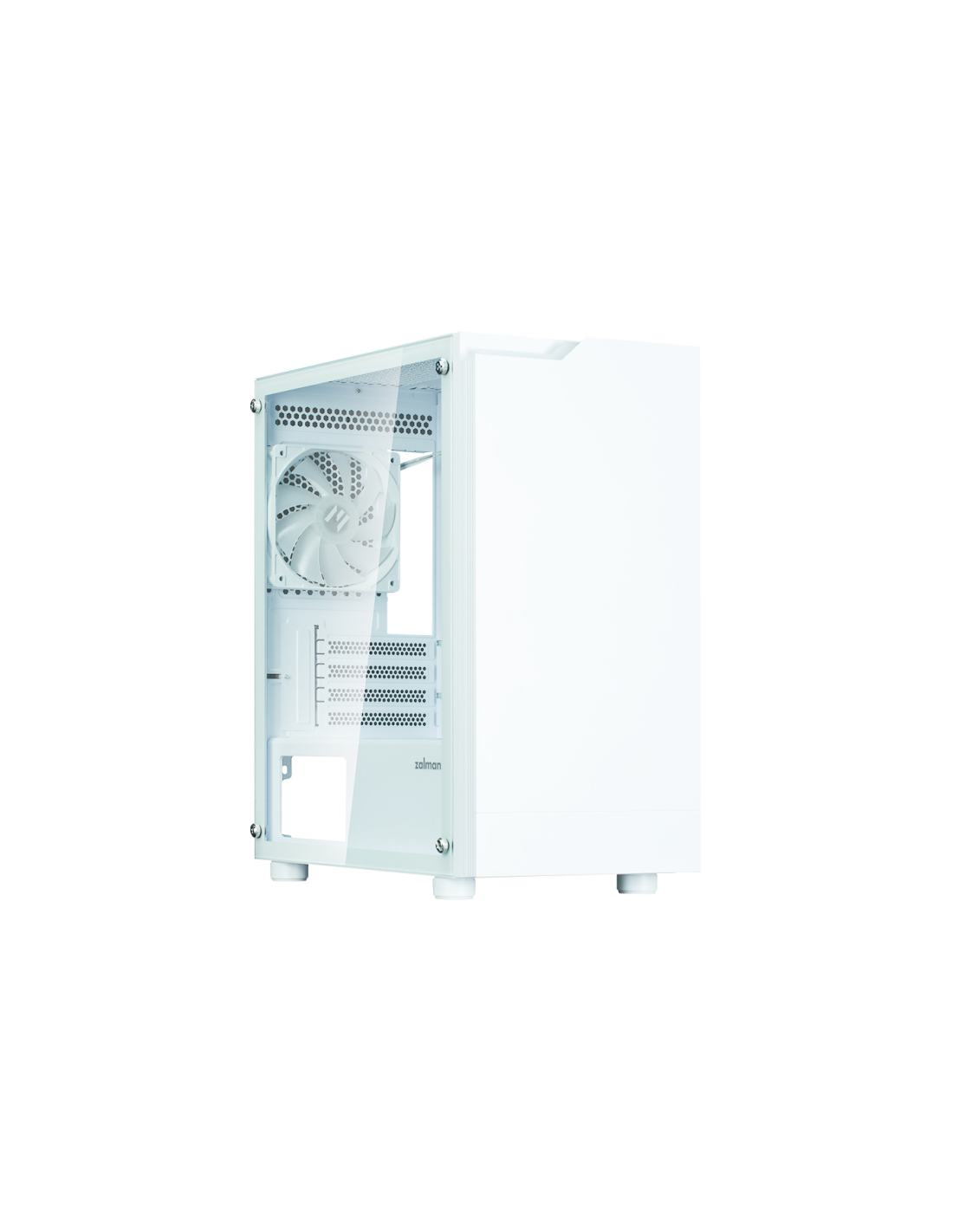Zalman T4 PLUS. Factor de forma: Mini Tower, Tipo: PC, Color del producto: Blanco. Diámetro de ventiladores frontales soportados: 120,140 mm, Diámetro de ventiladores secundarios soportados: 120 mm, Ventiladores traseros instalados: 1x 120 mm. Tamaños de disco duro soportados: 2.5,3.5". Ancho: 208 mm, Profundidad: 385 mm, Altura: 425 mm