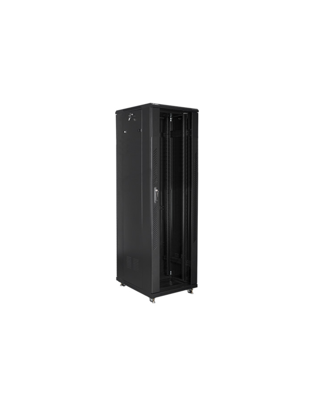 Lanberg FF01-6842-12B. Tipo: Rack o bastidor independiente, Capacidad del rack: 42U, Capacidad máxima de peso: 800 kg, Bloqueo del teclado, Patas ajustables, Rieles de rack, Código IP (International Protection): IP20, Rueda de reenvio. Peso: 102 kg. Color del producto: Negro