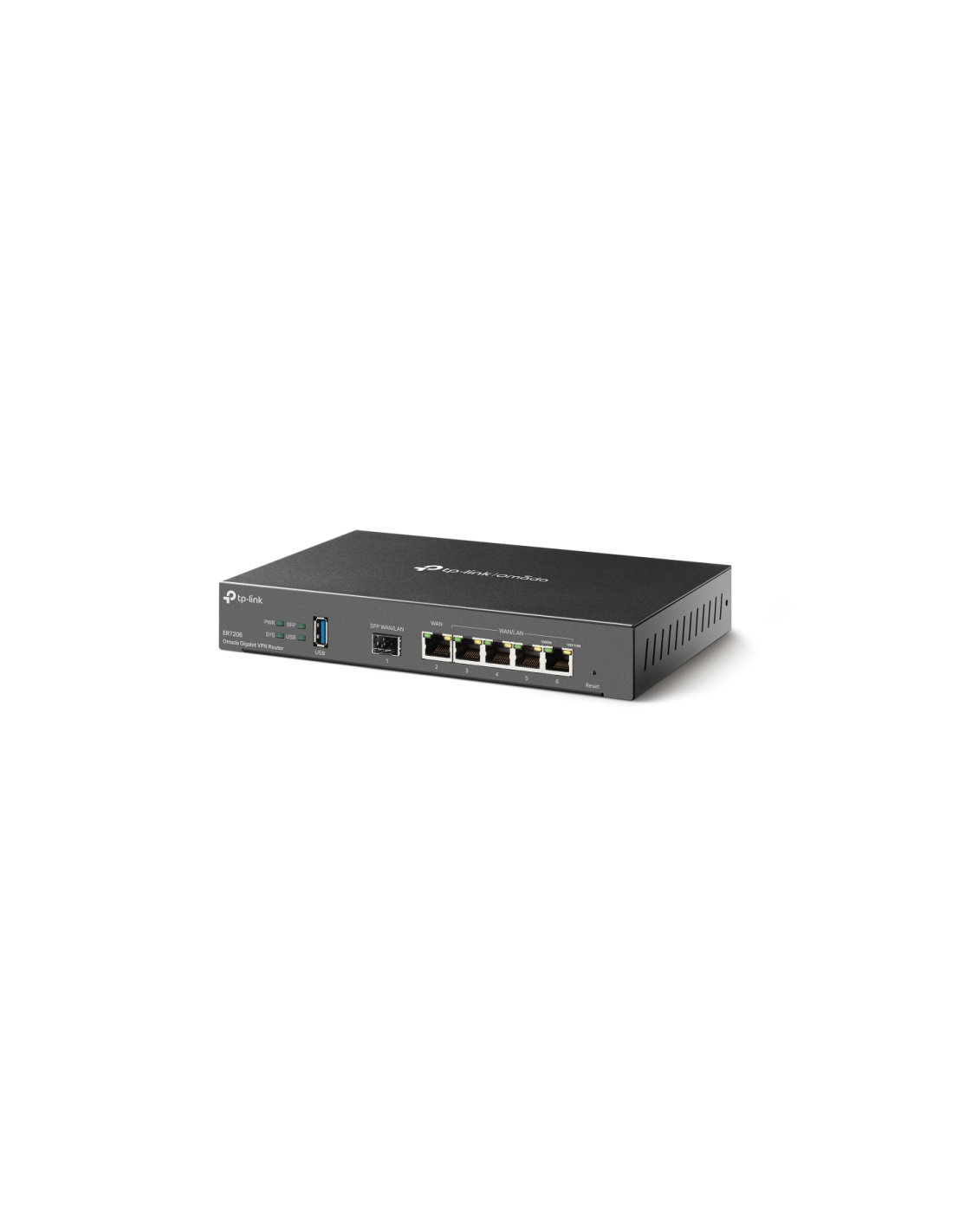 TP-Link Omada ER7206. Estándares de red: IEEE 802.3, IEEE 802.3ab, IEEE 802.3q, IEEE 802.3u, IEEE 802.3x, IEEE 802.3z, Tipo de interfaz ethernet: Gigabit Ethernet, Tecnología de cableado: 10/100/1000Base-T(X). Versión USB: 3.2 Gen 1 (3.1 Gen 1). Algoritmos de seguridad soportados: SNMP, SNMPv2, SNMPv3. Memoria Flash: 128 MB, Memoria interna: 512 MB, Tipo de memoria interna: DDR4. Color del producto: Negro