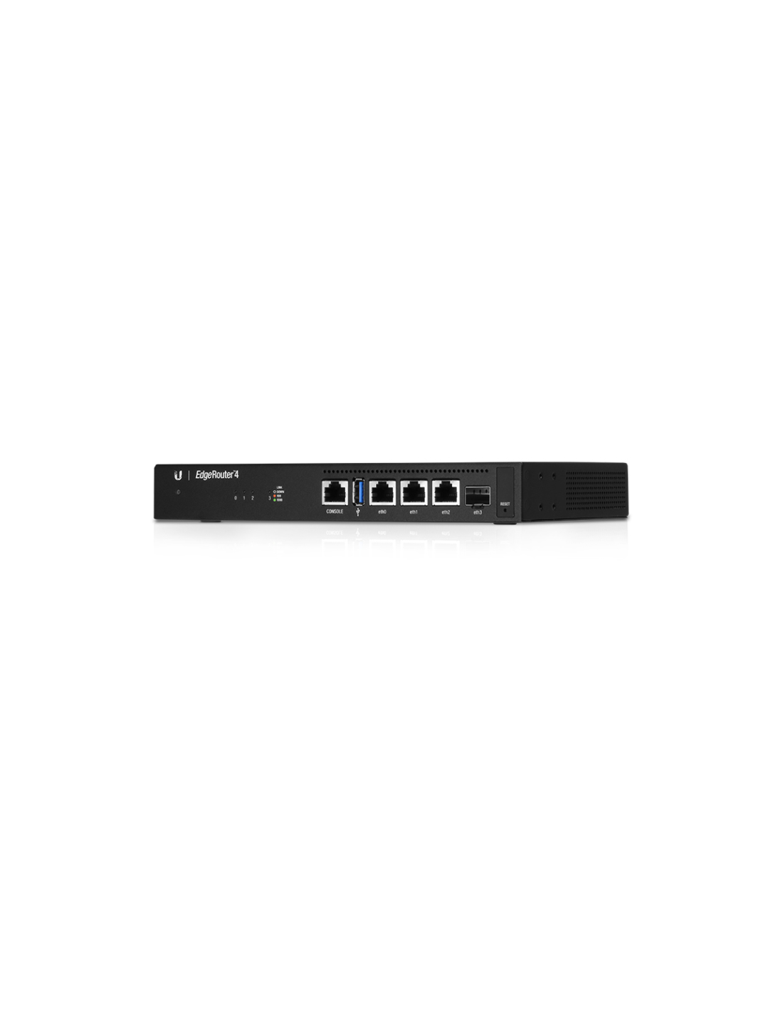 Ubiquiti EdgeRouter 4. Tipo de interfaz ethernet: Gigabit Ethernet, Tecnología de cableado: 10/100/1000Base-T(X), Ethernet LAN, velocidad de transferencia de datos: 10,100,1000 Mbit/s. Versión USB: 3.2 Gen 1 (3.1 Gen 1). Protocolos de gestión: UNMS, CLI, SNMP, NetFlow, LLDP, NTP. Algoritmos de seguridad soportados: IPSEC, SNMP, SSH, Soporte VPN: IPSec Site-to-Site and Remote Access OpenVPN Site-to-Site and Remote Access PPTP Remote Access.... Arquitectura del procesador: MIPS64, Frecuencia del procesador: 1