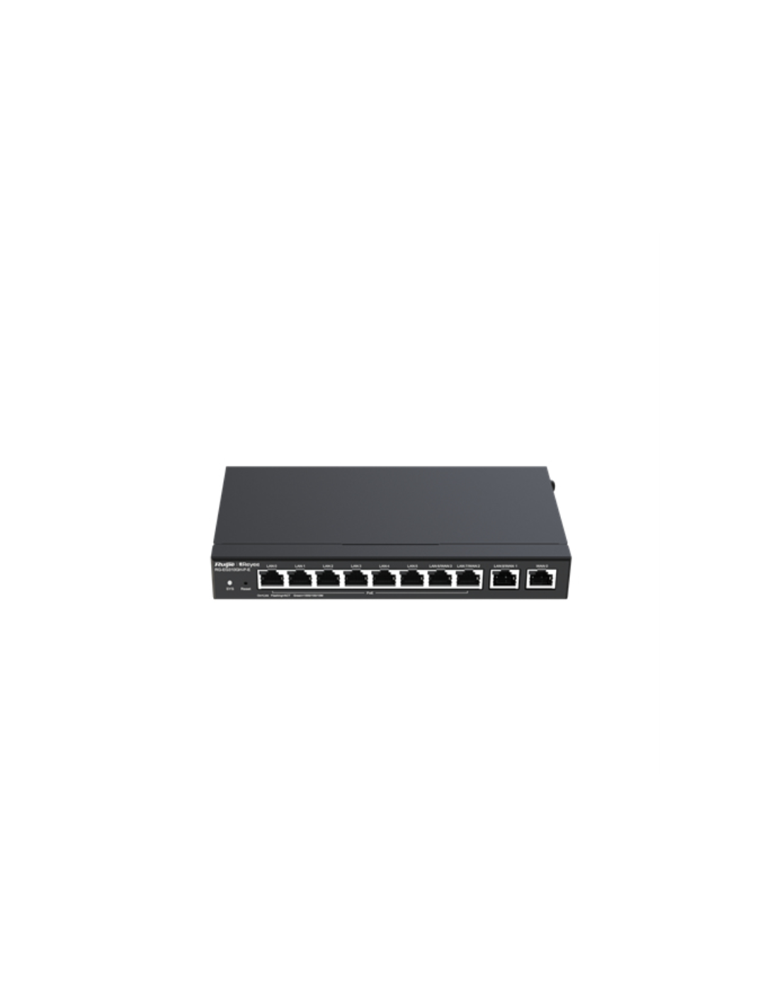 Ruijie Networks RG-EG310GH-P-E. Estándares de red: IEEE 802.3af, IEEE 802.3at, Capacidad de conmutación: 1,5 Gbit/s, Número de usuarios: 100 usuario(s). Certificados de conformidad: CE, RoHS. Capacidad de almacenamiento interno: 256 GB, Memoria interna: 512 MB. Color del producto: Negro. Consumo energético: 130 W, Voltaje de entrada AC: 100 - 240 V, Frecuencia de entrada AC: 50 - 60 Hz