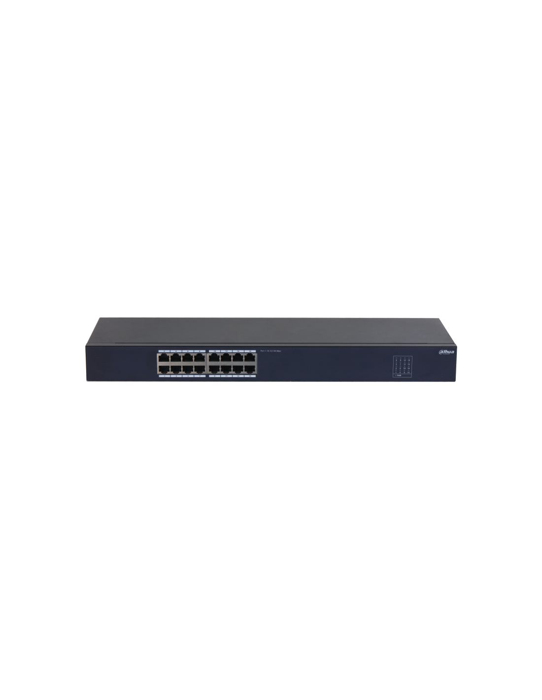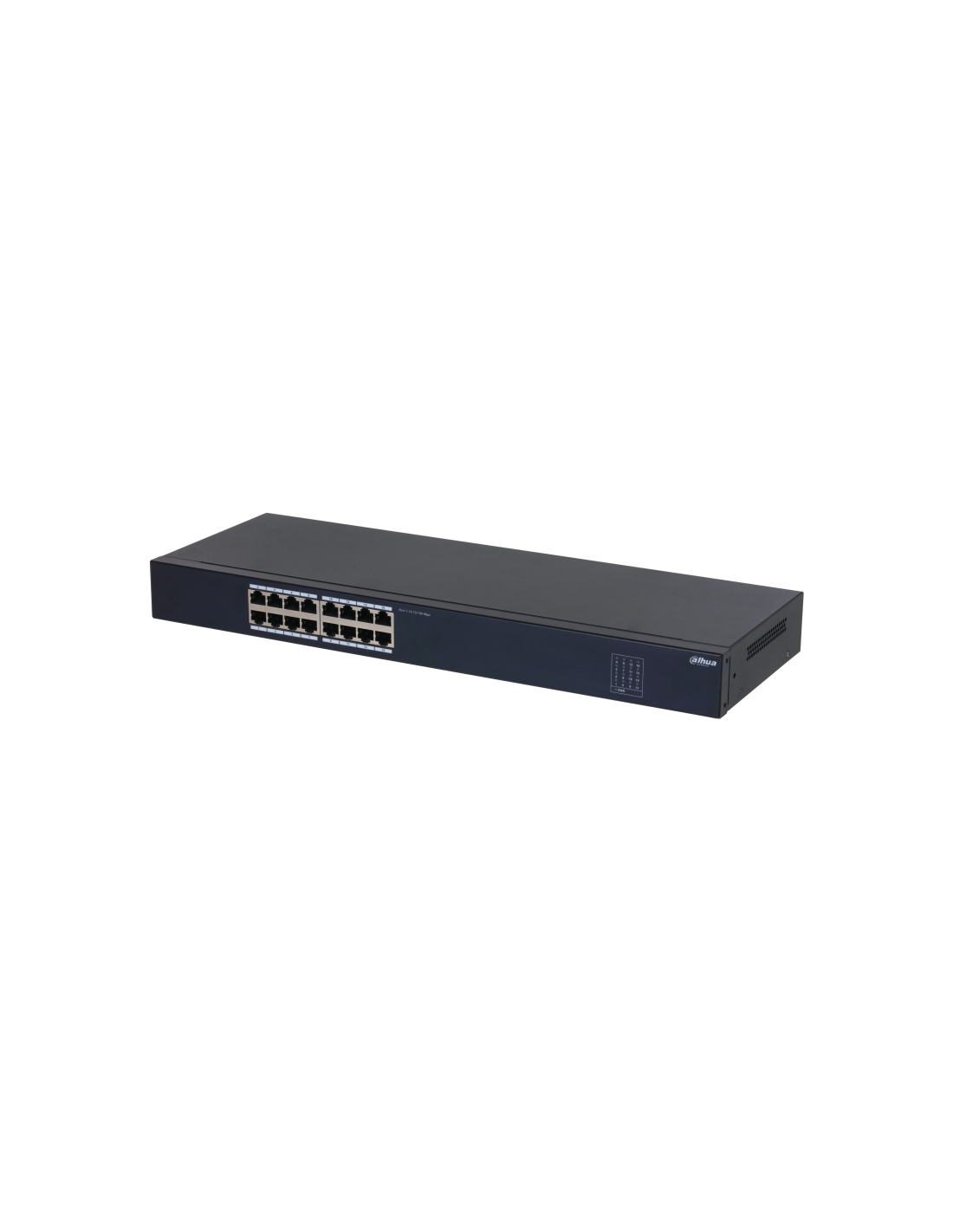 Dahua Technology SF1016. Tipo de interruptor: No administrado, Capa del interruptor: L2. Puertos tipo básico de conmutación RJ-45 Ethernet: Fast Ethernet (10/100), Cantidad de puertos básicos de conmutación RJ-45 Ethernet: 16. Tabla de direcciones MAC: 8000 entradas, Capacidad de conmutación: 3,2 Gbit/s. Estándares de red: IEEE 802.3, IEEE 802.3u, IEEE 802.3x. Montaje en rack