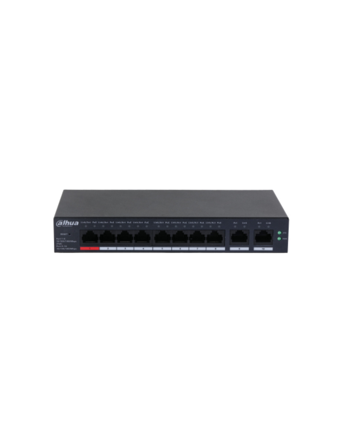 Dahua Technology DH-CS4010-8GT-110. Tipo de interruptor: Gestionado, Capa del interruptor: L2. Puertos tipo básico de conmutación RJ-45 Ethernet: Gigabit Ethernet (10/100/1000), Cantidad de puertos básicos de conmutación RJ-45 Ethernet: 10. Tabla de direcciones MAC: 8000 entradas, Capacidad de conmutación: 20 Gbit/s. Estándares de red: IEEE 802.3, IEEE 802.3ab, IEEE 802.3af, IEEE 802.3at, IEEE 802.3bt, IEEE 802.3u, IEEE 802.3x. Voltaje de entrada DC: 54 V. Energía sobre Ethernet (PoE)