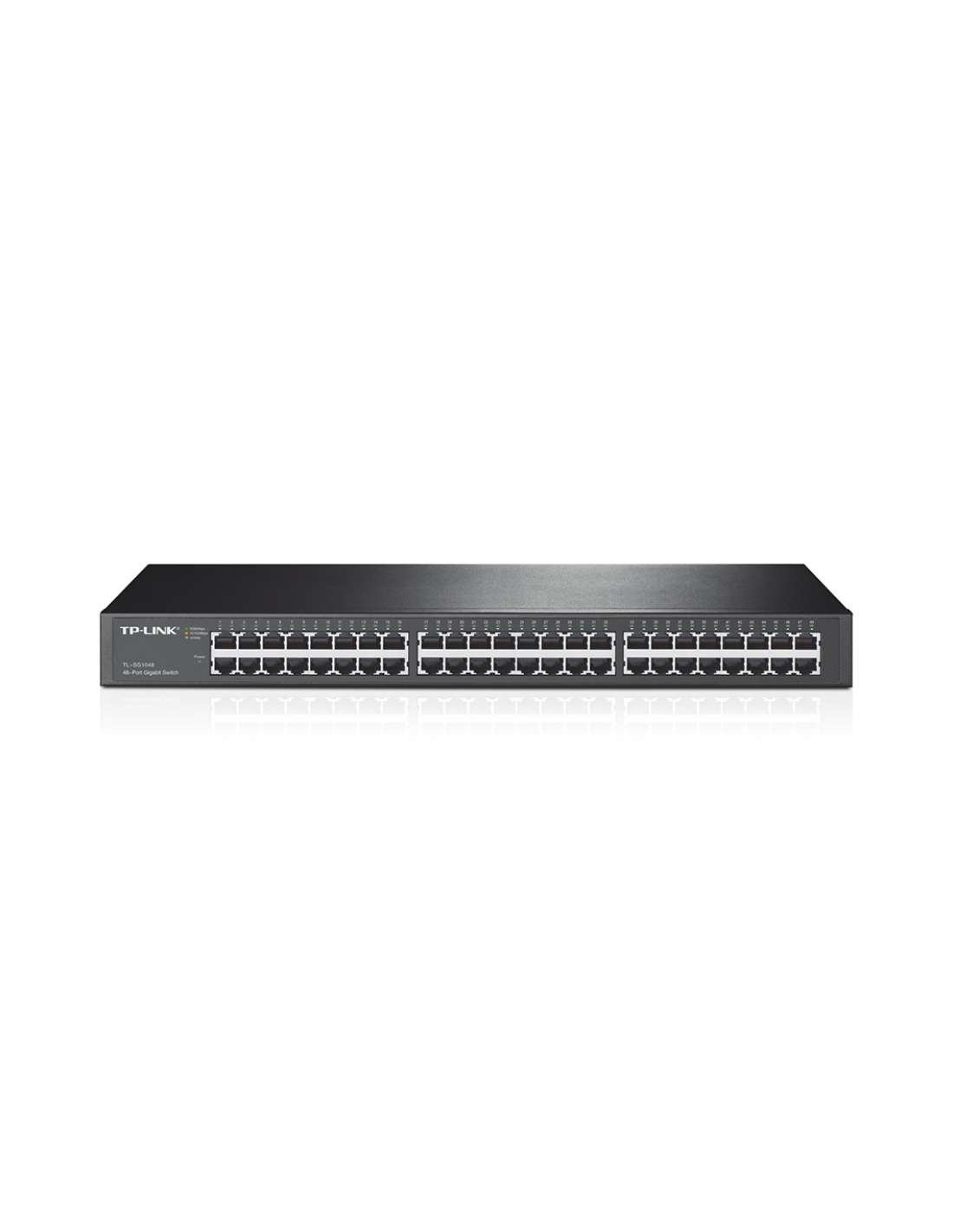 TP-Link TL-SG1048. Tipo de interruptor: No administrado. Puertos tipo básico de conmutación RJ-45 Ethernet: Gigabit Ethernet (10/100/1000), Cantidad de puertos básicos de conmutación RJ-45 Ethernet: 48. Bidireccional completo (Full duplex). Tabla de direcciones MAC: 16000 entradas, Capacidad de conmutación: 96 Gbit/s. Estándares de red: IEEE 802.3ab, IEEE 802.3i, IEEE 802.3u, IEEE 802.3x. Montaje en rack, Factor de forma: 1U