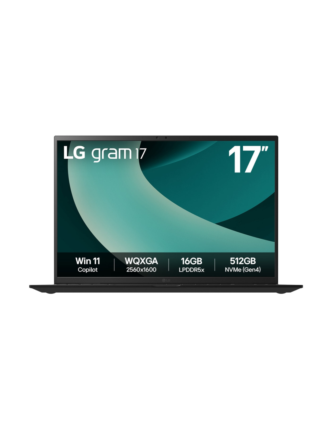 LG Gram 17Z90T. Tipo de producto: Portátil, Factor de forma: Concha. Familia de procesador: Intel Core Ultra 7, Modelo del procesador: 255H. Diagonal de la pantalla: 43,2 cm (17"), Tipo HD: WQXGA, Resolución de la pantalla: 2560 x 1600 Pixeles. Memoria interna: 32 GB, Tipo de memoria interna: LPDDR5x-SDRAM. Capacidad total de almacenaje: 1 TB, Unidad de almacenamiento: SSD. Modelo de adaptador gráfico incorporado: Intel Arc 140T. Sistema operativo instalado: Windows 11 Home. Color del producto: Negro. Peso: