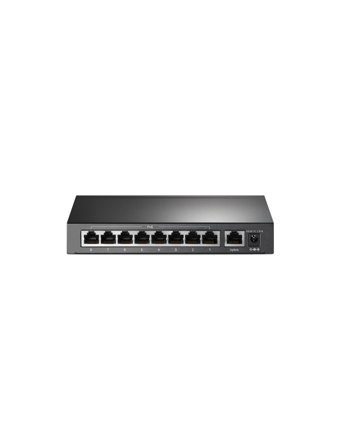 TP-Link TL-SF1009P. Tipo de interruptor: No administrado. Puertos tipo básico de conmutación RJ-45 Ethernet: Fast Ethernet (10/100), Cantidad de puertos básicos de conmutación RJ-45 Ethernet: 9. Bidireccional completo (Full duplex). Tabla de direcciones MAC: 2000 entradas, Capacidad de conmutación: 1,6 Gbit/s. Estándares de red: IEEE 802.3af, IEEE 802.3at, IEEE 802.3i, IEEE 802.3u, IEEE 802.3x. Voltaje de entrada DC: 53.5 V. Conector eléctrico: Toma de entrada de CC. Energía sobre Ethernet (PoE). Montaje de