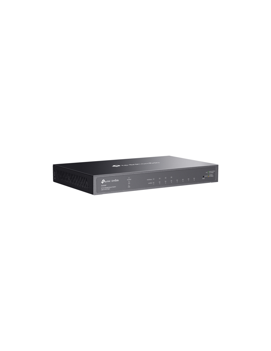 TP-Link Omada TL-SG2008P. Tipo de interruptor: Gestionado, Capa del interruptor: L2/L2+. Puertos tipo básico de conmutación RJ-45 Ethernet: Gigabit Ethernet (10/100/1000), Cantidad de puertos básicos de conmutación RJ-45 Ethernet: 8. Tabla de direcciones MAC: 8000 entradas, Capacidad de conmutación: 16 Gbit/s. Estándares de red: IEEE 802.1D, IEEE 802.1Q, IEEE 802.1p, IEEE 802.1s, IEEE 802.1w, IEEE 802.1x, IEEE 802.3ab, IEEE.... Energía sobre Ethernet (PoE). Montaje en rack