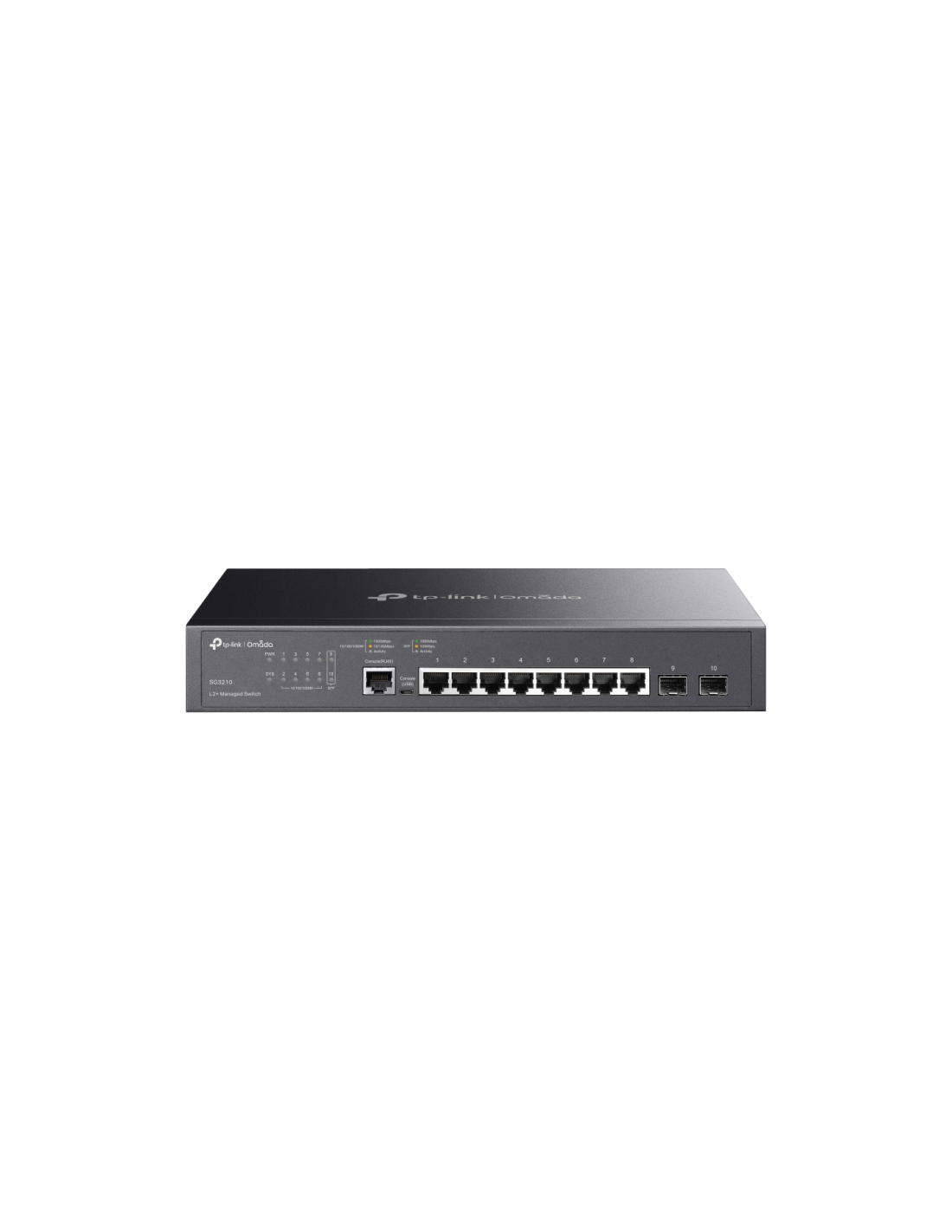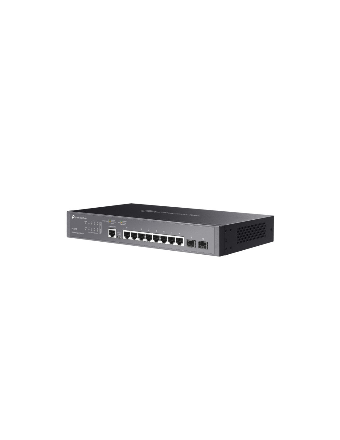 TP-Link Omada SG3210. Tipo de interruptor: Gestionado, Capa del interruptor: L2/L3. Puertos tipo básico de conmutación RJ-45 Ethernet: Gigabit Ethernet (10/100/1000), Cantidad de puertos básicos de conmutación RJ-45 Ethernet: 8, Puerto de consola: RJ-45/micro-USB. Tabla de direcciones MAC: 8000 entradas, Capacidad de conmutación: 20 Gbit/s. Estándares de red: IEEE 802.1D, IEEE 802.1Q, IEEE 802.1p, IEEE 802.1s, IEEE 802.1w, IEEE 802.1x, IEEE 802.3ab, IEEE.... Montaje en rack, Factor de forma: 1U