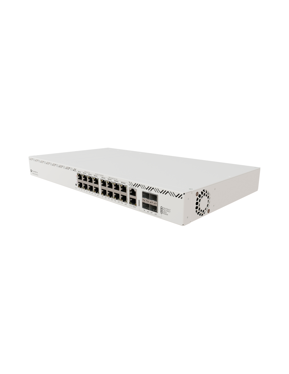 Mikrotik CRS320-8P-8B-4S+RM. Puertos tipo básico de conmutación RJ-45 Ethernet: Gigabit Ethernet (10/100/1000), Cantidad de puertos básicos de conmutación RJ-45 Ethernet: 17, Puerto de consola: RJ-45. Estándares de red: IEEE 802.3af, IEEE 802.3at. Energía sobre Ethernet (PoE). Montaje en rack