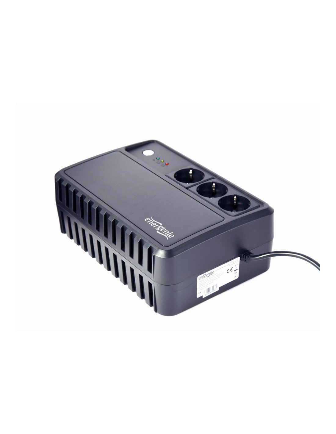 Gembird EG-UPS-3SDT1000-01. Topología UPS: Línea interactiva, Capacidad de potencia de salida (VA): 1 kVA, Potencia de salida: 600 W. Tipo de salida AC: Tipo F, Conector: Tipo F, Cantidad de salidas AC: 3 salidas AC. Tecnología de batería: Sealed Lead Acid (VRLA), Capacidad de la batería: 9 Ah, Voltaje de la pila: 12 V. Factor de forma: Escritorio, Color del producto: Negro, Longitud de cable: 1,2 m. Certificados de conformidad: CE, RoHS