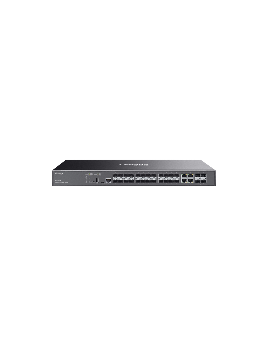OMADA SG5428XF. Tipo de interruptor: Gestionado, Capa del interruptor: L3. Puerto de consola: RJ-45/USB Type-C. Tabla de direcciones MAC: 16000 entradas, Capacidad de conmutación: 128 Gbit/s. Estándares de red: IEEE 802.1Q, IEEE 802.1ab, IEEE 802.1p, IEEE 802.1x, IEEE 802.3ah, IEEE 802.3az, IEEE 802.3x. Montaje en rack