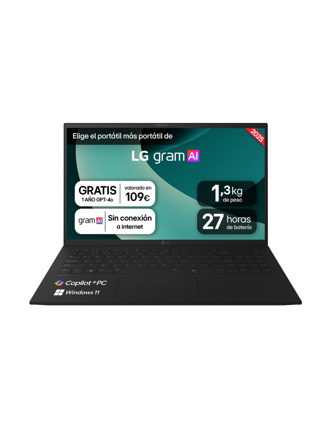 Con una batería de alta capacidad de hasta 27 horas y nuestro asistente inteligente AI, gram se adapta a tu entorno y ofrece un rendimiento optimizado durante más horas. Aumenta tu productividad y disfruta de un trabajo sin interrupciones.