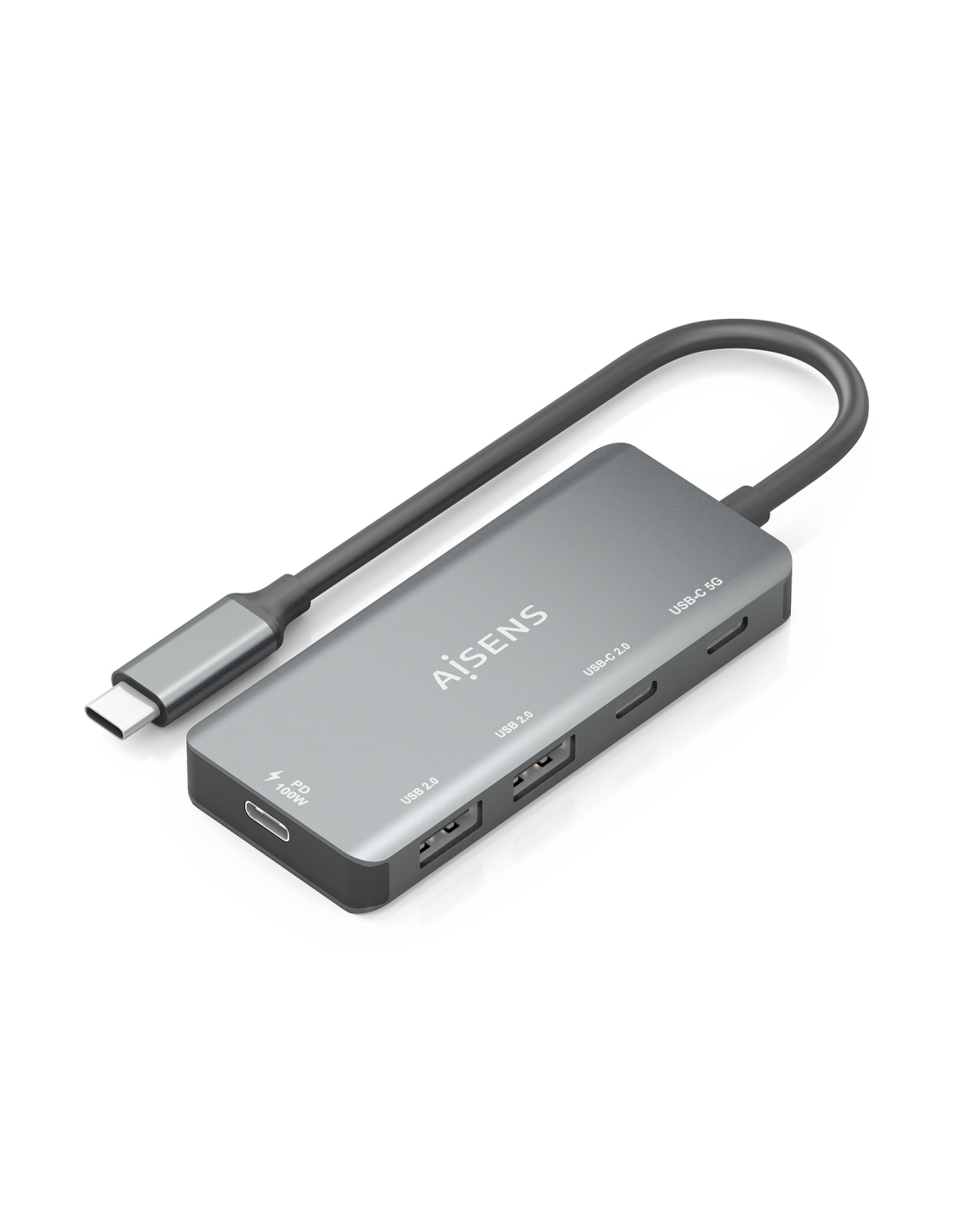 AISENS Hub USB 3.1 USB-C, USB-C/M-1xUSB-C PD 100W+1xUSB-C USB3.0/H+1xUSB-C USB2.0/H+2xUSB-A USB2.0/H, Gris, 15cm