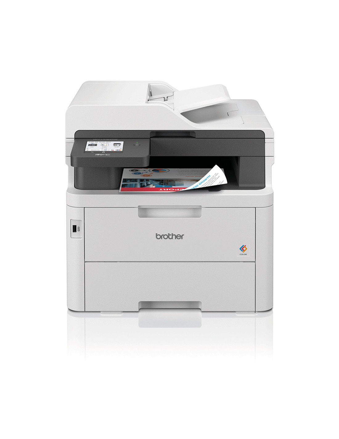 Los entornos de trabajo en la oficina o en el hogar cambian continuamente con el objetivo de aumentar la eficiencia y la productividad. Por eso con la MFC-L3760CDW cuentas con un dispositivo fiable que imprime rápidamente y sin esfuerzo, con:- Impresión a doble cara automática hasta 10 caras por minuto- Escaneado de 21 imágenes por minuto (3)- Pantalla a color táctil de 8,8 cm- Alimentador automático de documentos de hasta 50 hojas (11)- Conexión de red Gigabit Ethernet, WiFi 5GHz y USB- Bandeja de entrada de papel de 250 hojas(11)- Opción de contar con consumibles un rendimiento superior de hasta 3.000 páginas en negro y 2.300 en color(8)