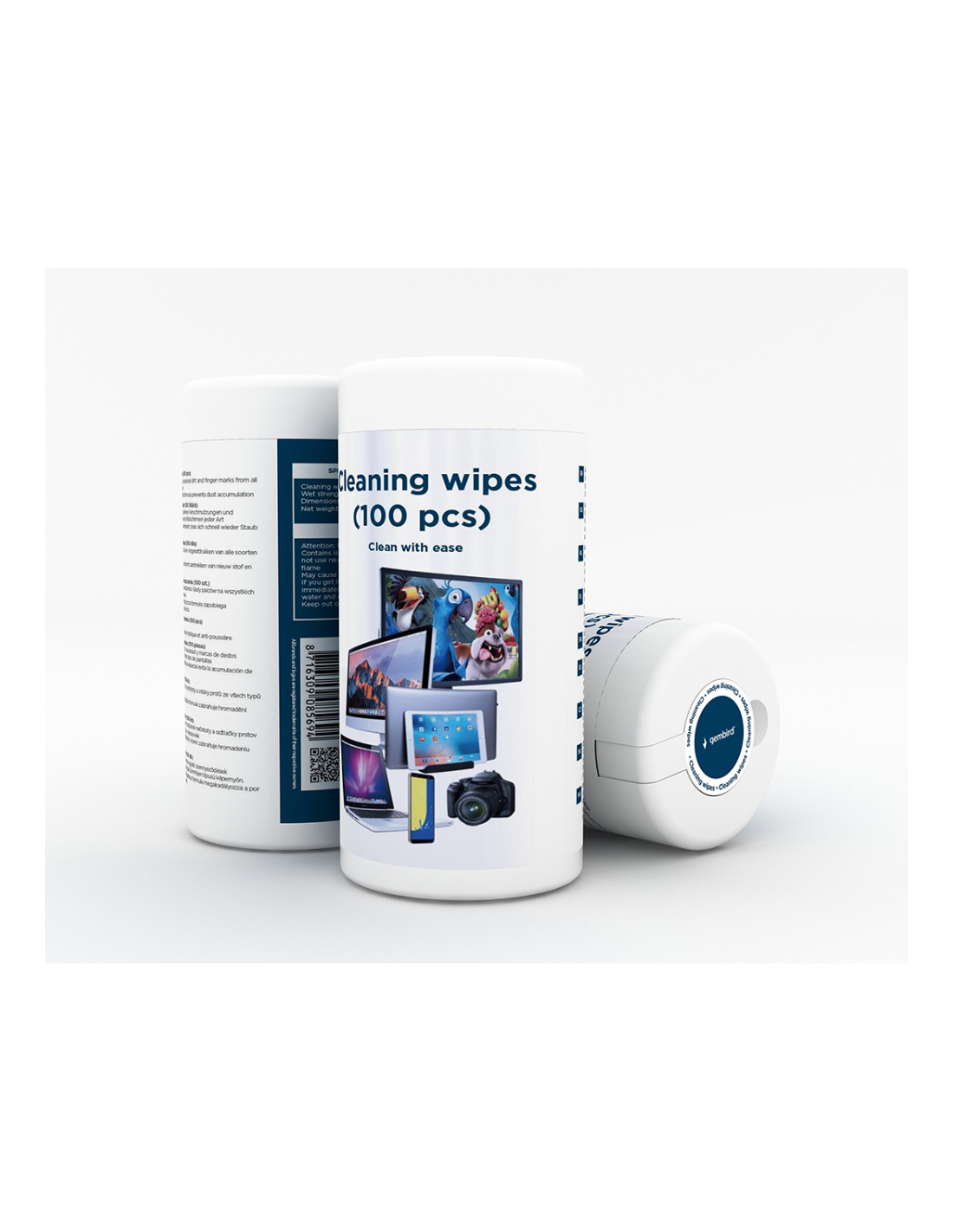 Gembird CK-WW100-01. Tipo de producto: Paños secos para limpieza de equipos, Uso adecuado: LCD/TFT/Plasma, Material: Microfibra. Ancho: 80 mm, Profundidad: 120 mm, Altura: 200 mm. Número de productos incluidos: 1 pieza(s), Cantidad por paquete: 100 pieza(s). Ancho del paquete: 80 mm, Profundidad del paquete: 120 mm, Altura del paquete: 170 mm