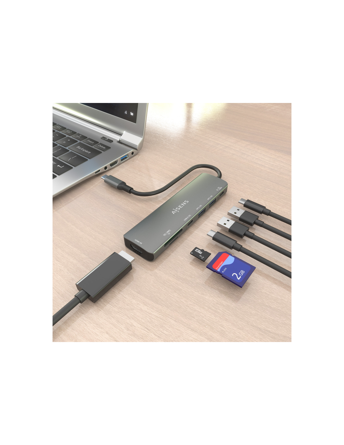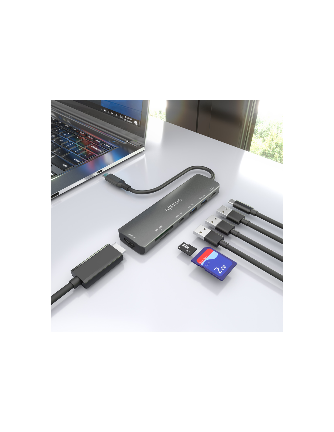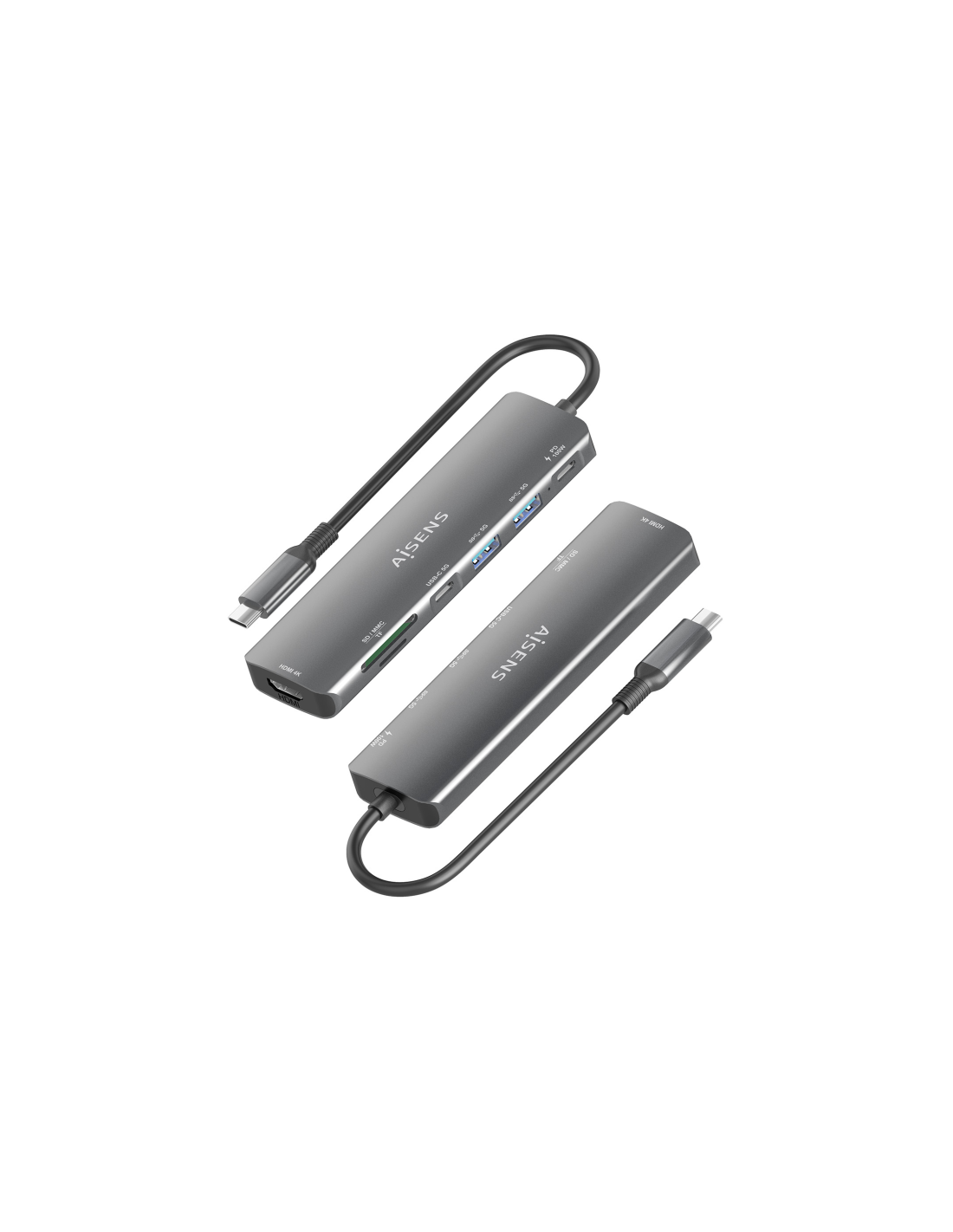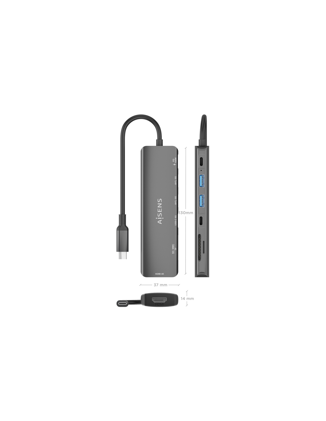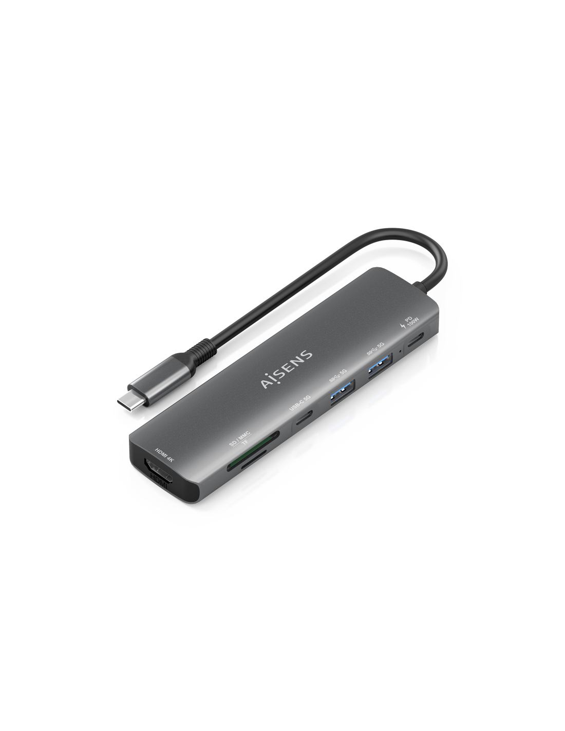 AISENS USB-C Dock 7 en 1, USB-C A, 1x HDMI, 2x USB-A, 1x USB-C, 1x USB-C PD 100W, 1x SD, 1x MicroSD, Gris, 15cm. Tecnología de conectividad: Alámbrico, Interfaz de host: USB 3.2 Gen 1 (3.1 Gen 1) Type-C, Entrega de energía USB (USB Power Delivery) de hasta: 100 W. Color del producto: Gris, Tarjetas de memoria compatibles: MMC, MicroSD (TransFlash), MicroSDHC, MicroSDXC, RS-MMC, SD, SDHC, SDXC, Velocidad de transferencia de datos: 5 Gbit/s. Alimentación: USB, Conector eléctrico: USB Tipo C, Longitud del cabl