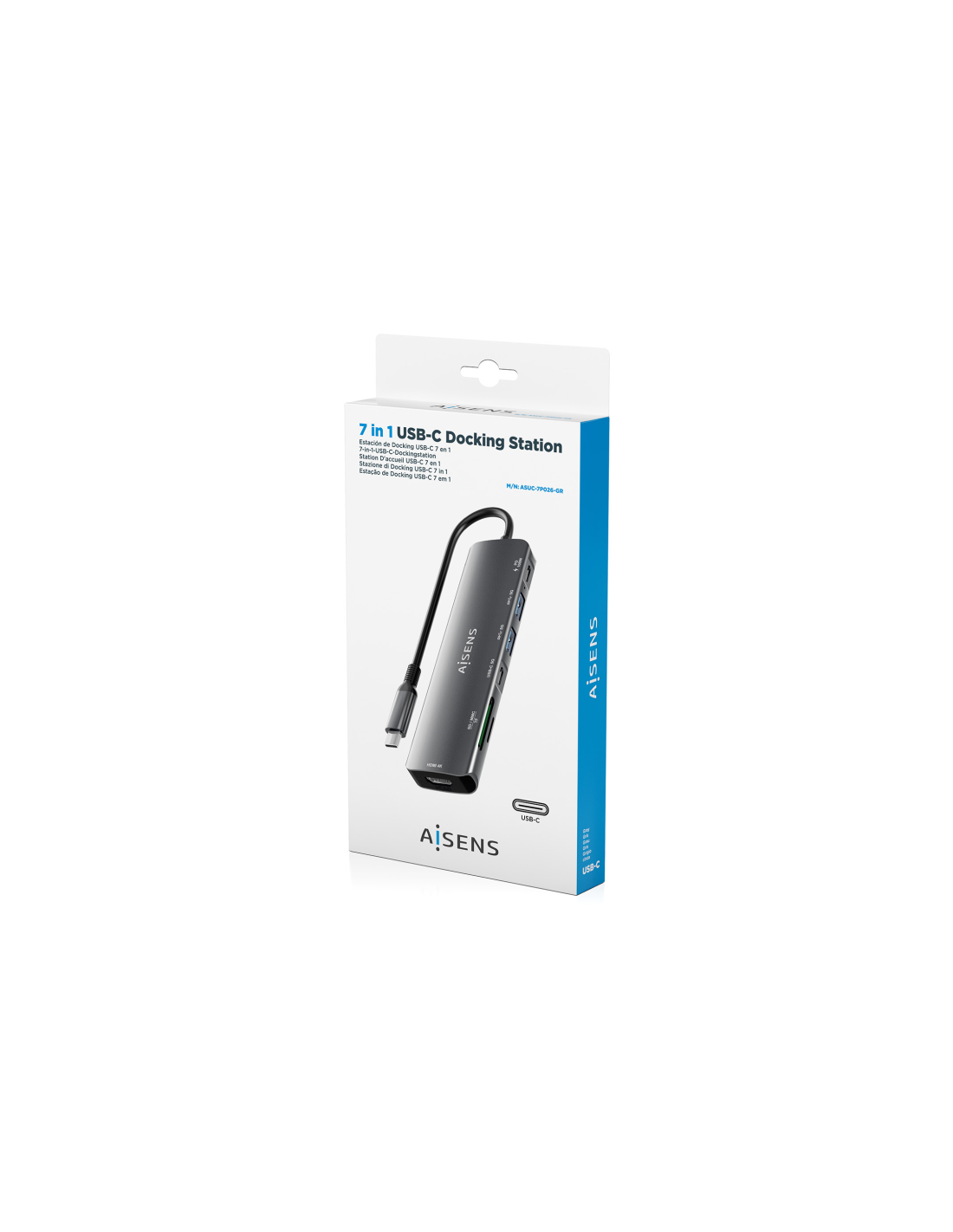 AISENS ASUC-7P026-GR base para portátil y replicador de puertos Alámbrico USB 3.2 Gen 1 (3.1 Gen 1) Type-C