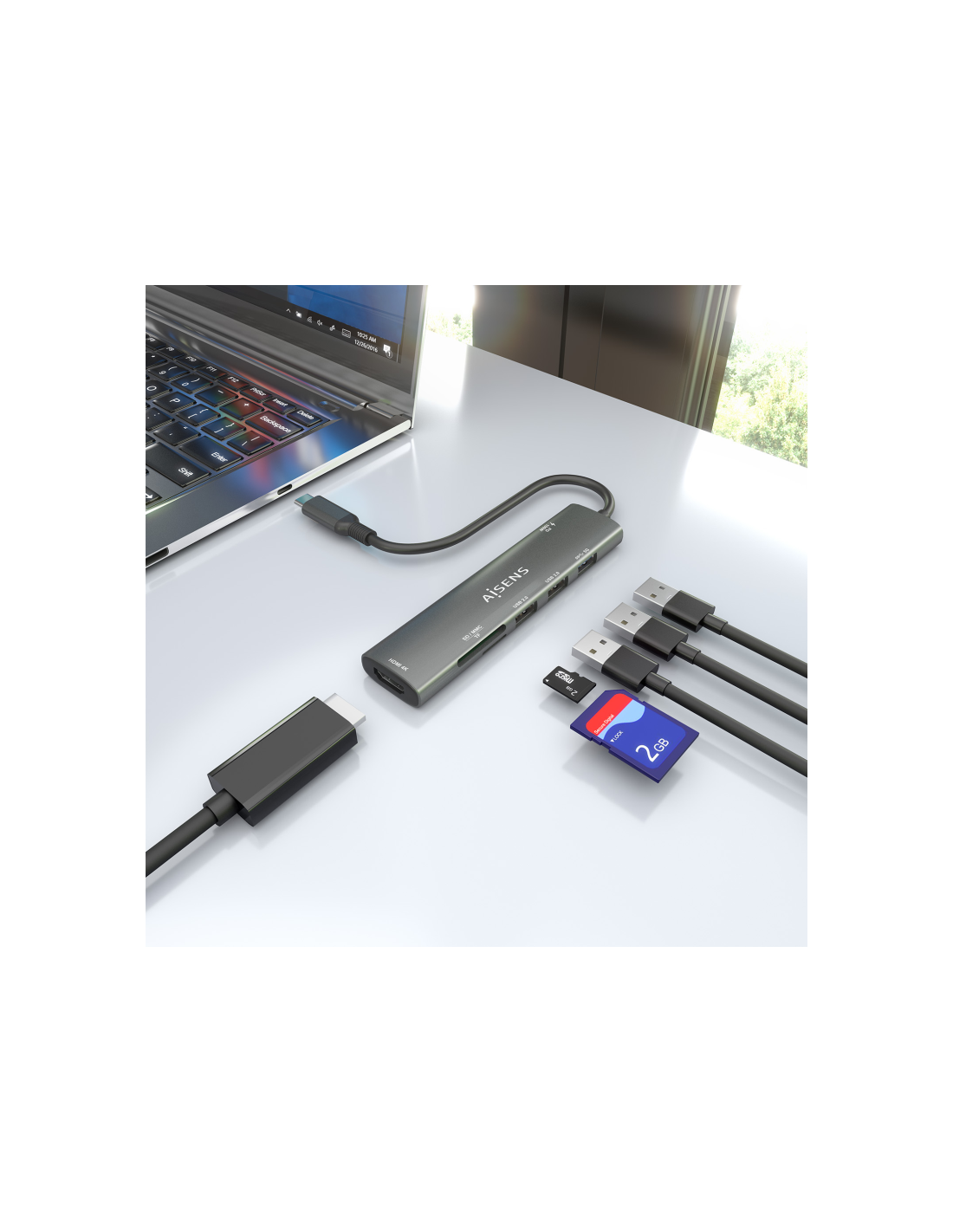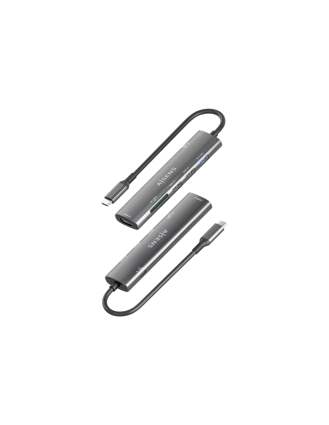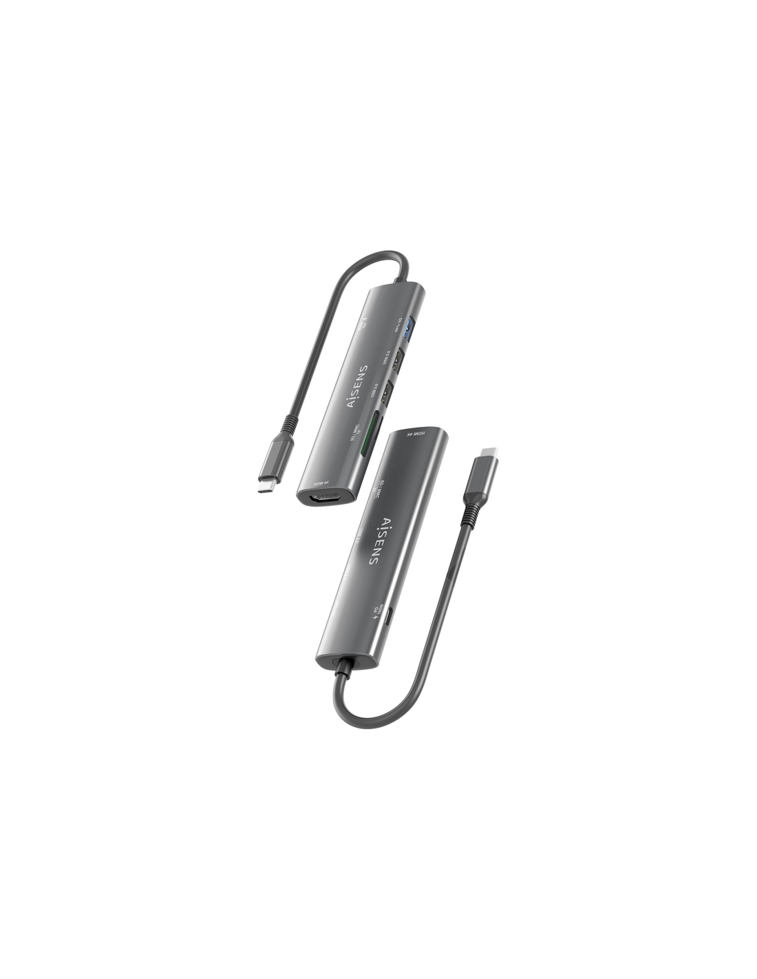 AISENS USB-C Dock 7 en 1, USB-C A, 1x HDMI, 2x USB-A USB2.0, 1x USB-A USB3.0, 1x USB-C PD 100W, 1x SD, 1x MicroSD, Gris, 15cm