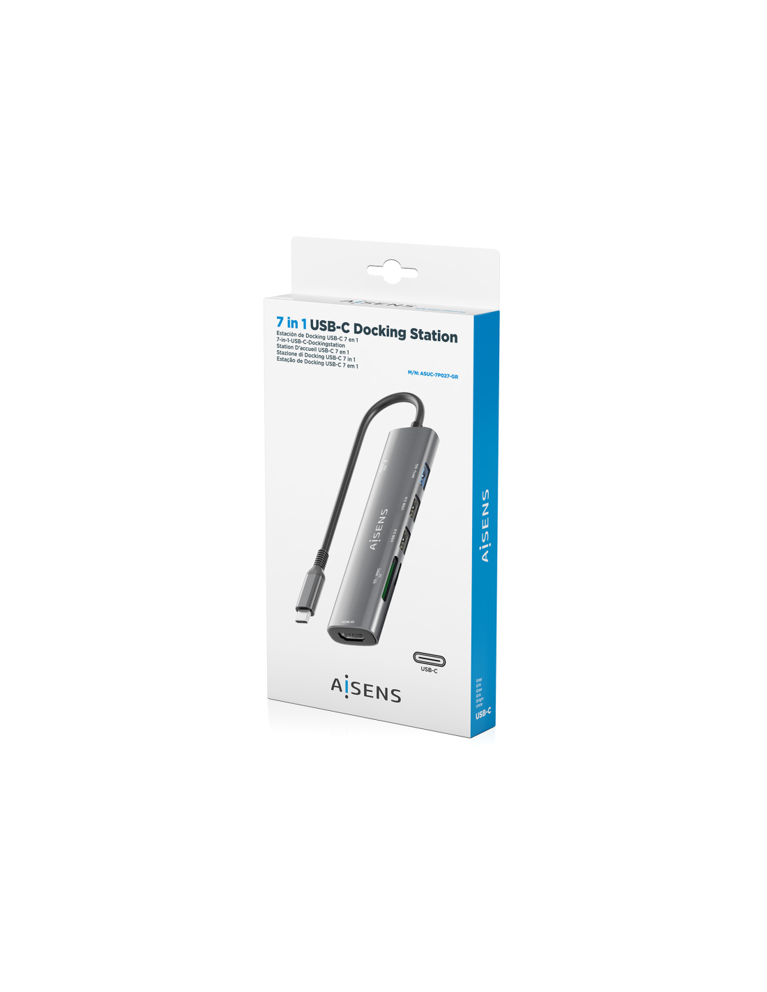 AISENS USB-C Dock 7 en 1, USB-C A, 1x HDMI, 2x USB-A USB2.0, 1x USB-A USB3.0, 1x USB-C PD 100W, 1x SD, 1x MicroSD, Gris, 15cm. Tecnología de conectividad: Alámbrico, Interfaz de host: USB 3.2 Gen 1 (3.1 Gen 1) Type-C, Entrega de energía USB (USB Power Delivery) de hasta: 100 W. Color del producto: Gris, Tarjetas de memoria compatibles: MMC, MicroSD (TransFlash), MicroSDHC, MicroSDXC, RS-MMC, SD, SDHC, SDXC, Velocidad de transferencia de datos: 5 Gbit/s. Alimentación: USB, Conector eléctrico: USB Tipo C, Lon