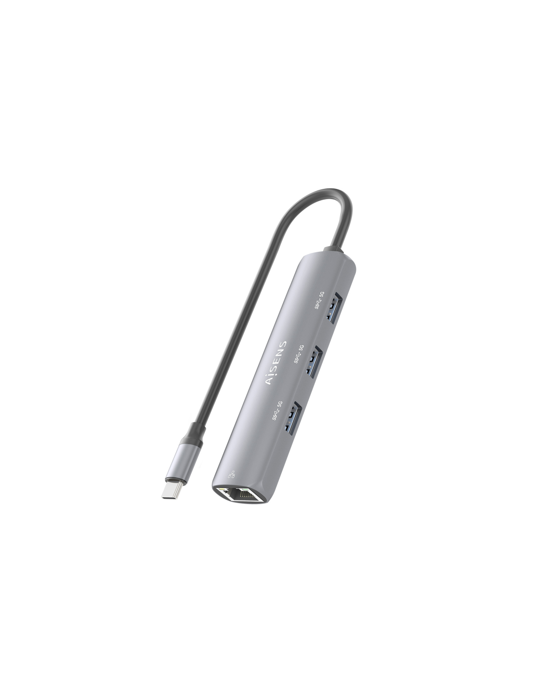 AISENS Dock USB-C A Ethernet Gigabit + Hub 3xUSB-A, Gris, 15cm