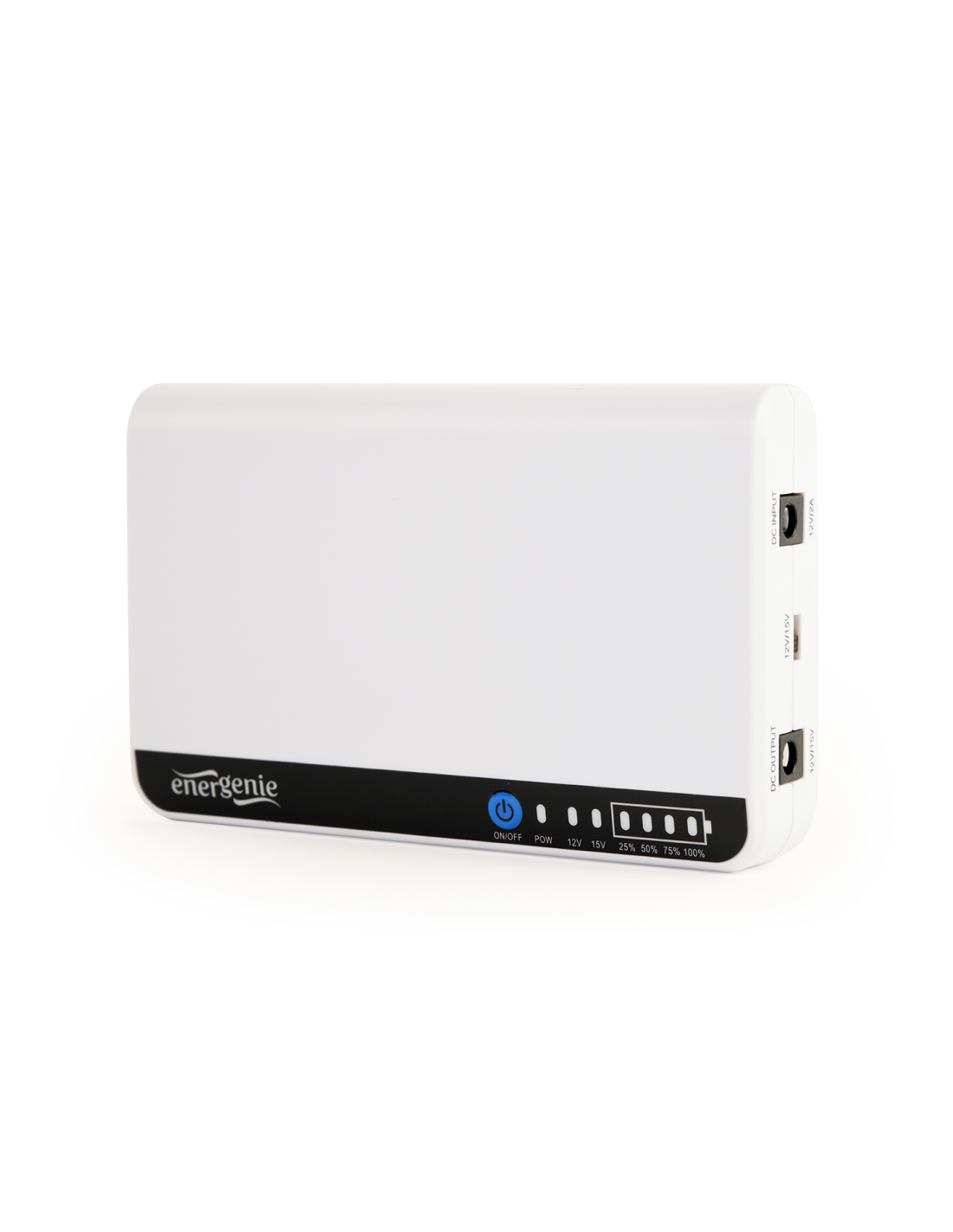 Gembird EG-UPS-DC18. Potencia de salida: 18 W, Voltaje de entrada de operación (min): 12 V, Voltaje de entrada de operación (max): 12 V. Tecnología de batería: Ión de litio, Capacidad de la batería: 2200 Ah, Voltaje de la pila: 12 V. Factor de forma: Compacto, Color del producto: Blanco, Tipo de enfriamiento: Pasivo. Certificados de conformidad: CE, RoHS. Cables incluidos: Cable de alimentación