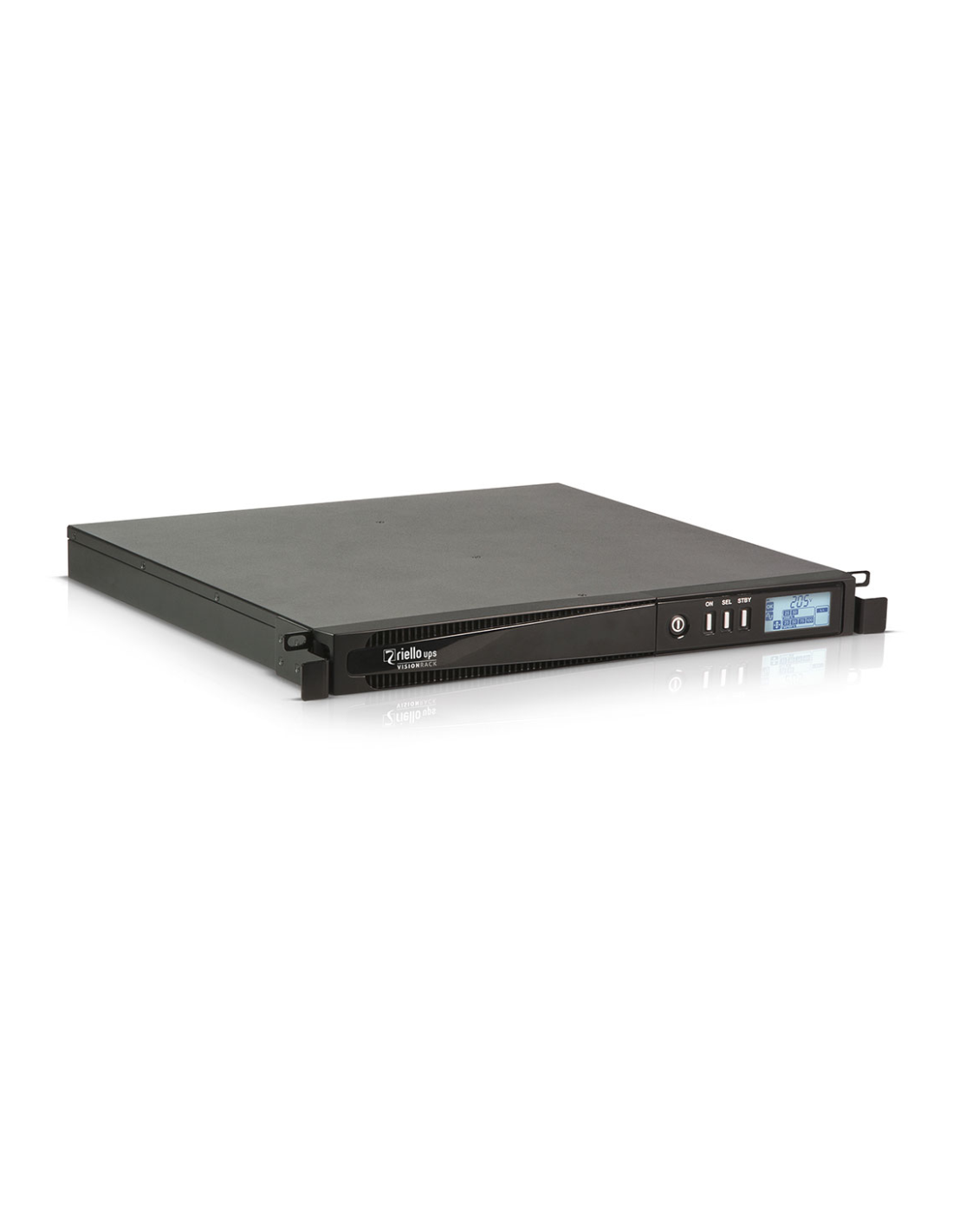 Riello VSR 800. Topología UPS: Línea interactiva, Capacidad de potencia de salida (VA): 0,8 kVA, Potencia de salida: 640 W. Tipo de salida AC: C13 acoplador, Conector: C14 acoplador, Cantidad de salidas AC: 4 salidas AC. Tecnología de batería: Sealed Lead Acid (VRLA), Tiempo de recarga de la batería: 6 h. Factor de forma: Montaje en rack o Montaje en bastidor, Color del producto: Negro, Capacidad del rack: 1U. Profundidad: 420 mm, Peso: 12 kg, Ancho del paquete: 595 mm