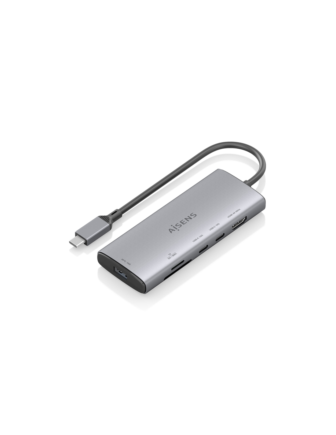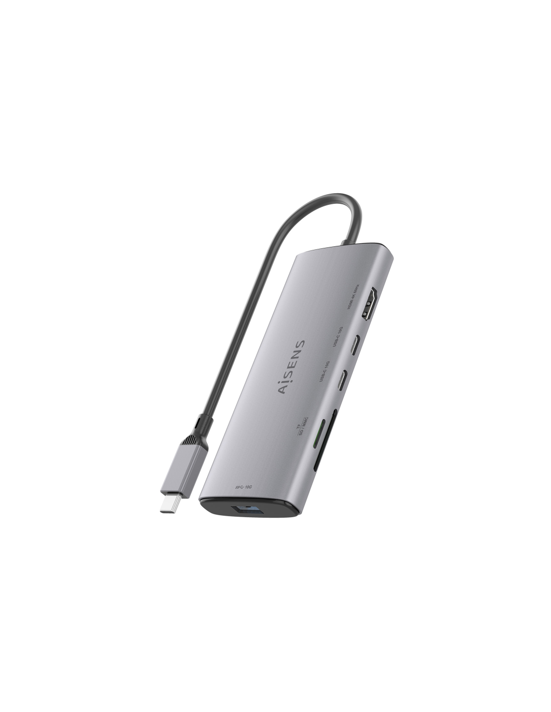 AISENS USB-C Dock 6 en 1, USB-C a 1xHDMI, 1xUSB-A 10G, 2xUSB-C 10G, 1xSD, 1xMicroSD, Gris, 20cm