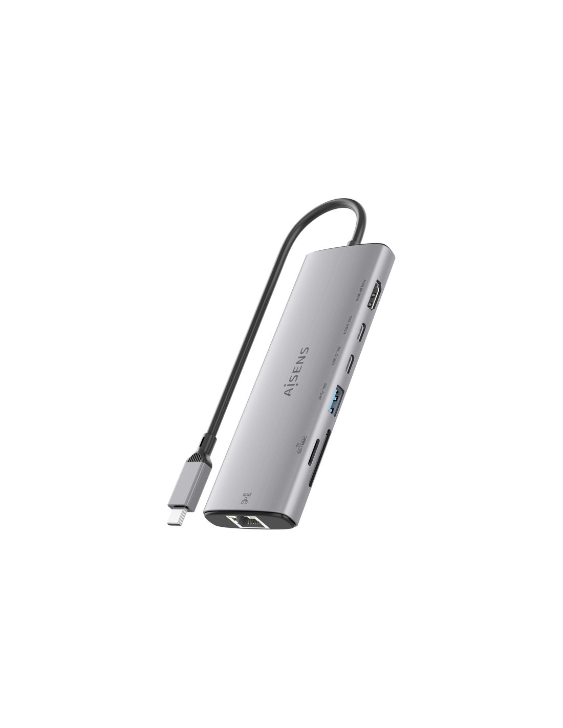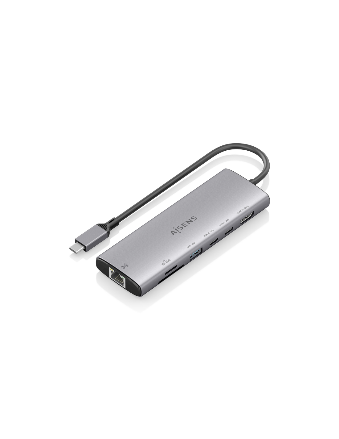 AISENS USB-C Dock 7 en 1, USB-C a 1xHDMI, 1xRJ45, 1xUSB-A 10G, 2xUSB-C 10G, 1xSD, 1xMicroSD, Gris, 20cm. Tecnología de conectividad: Alámbrico, Interfaz de host: USB 3.2 Gen 1 (3.1 Gen 1) Type-C. Ethernet LAN, velocidad de transferencia de datos: 10,100,1000 Mbit/s, Estándares de red: IEEE 802.3, IEEE 802.3ab, IEEE 802.3az, IEEE 802.3u, IEEE 802.3x. Color del producto: Gris, Tarjetas de memoria compatibles: MMC, MicroSD (TransFlash), MicroSDHC, MicroSDXC, RS-MMC, SD, SDHC, SDXC, Velocidad de transferencia d